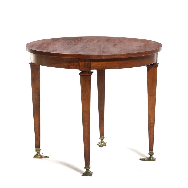 Tavolo tondo da bordo con piedini in ottone. Italia XX secolo