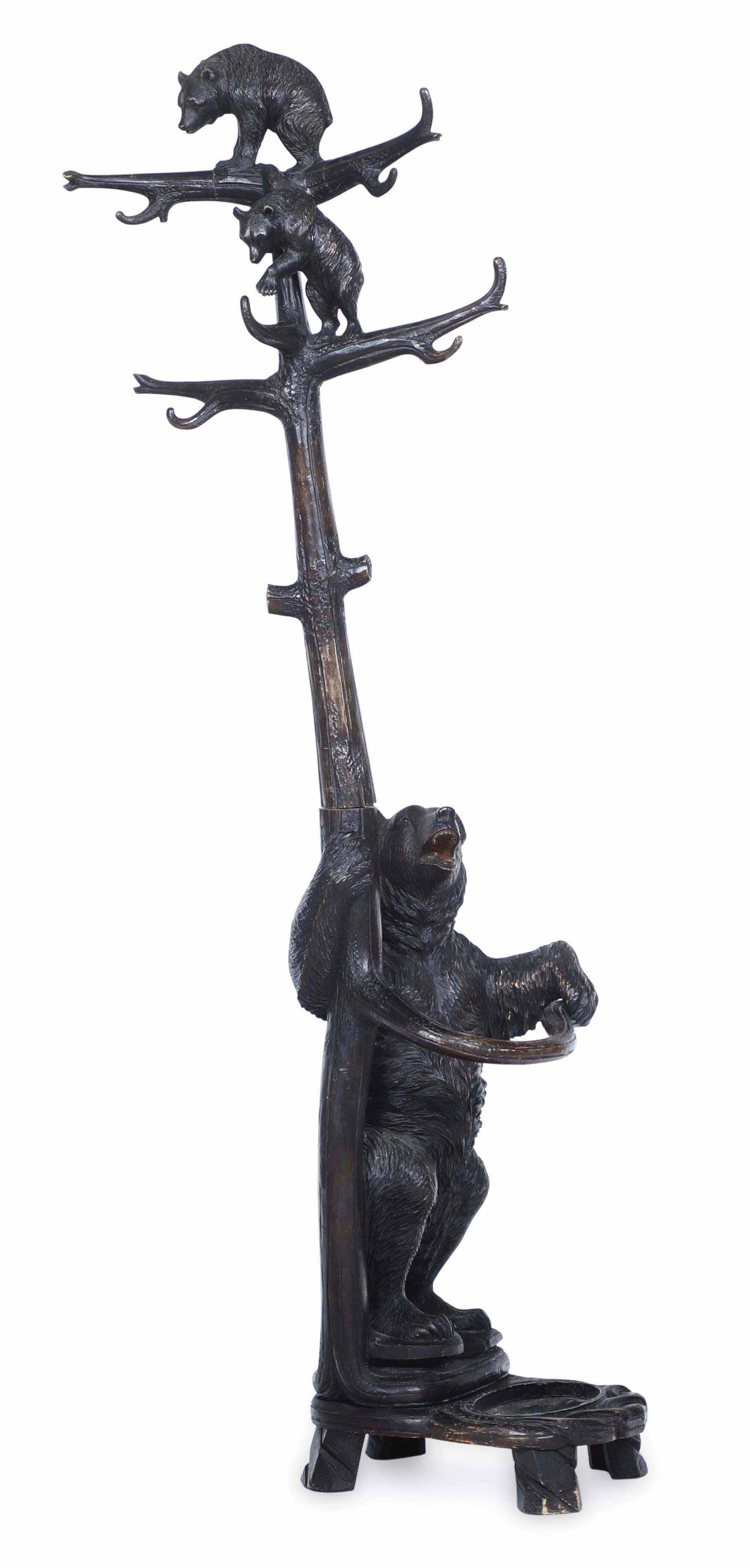 Attaccapanni con orsi “foresta nera”. Legno scolpito. Brienz, Svizzera, XIX-XX secolo