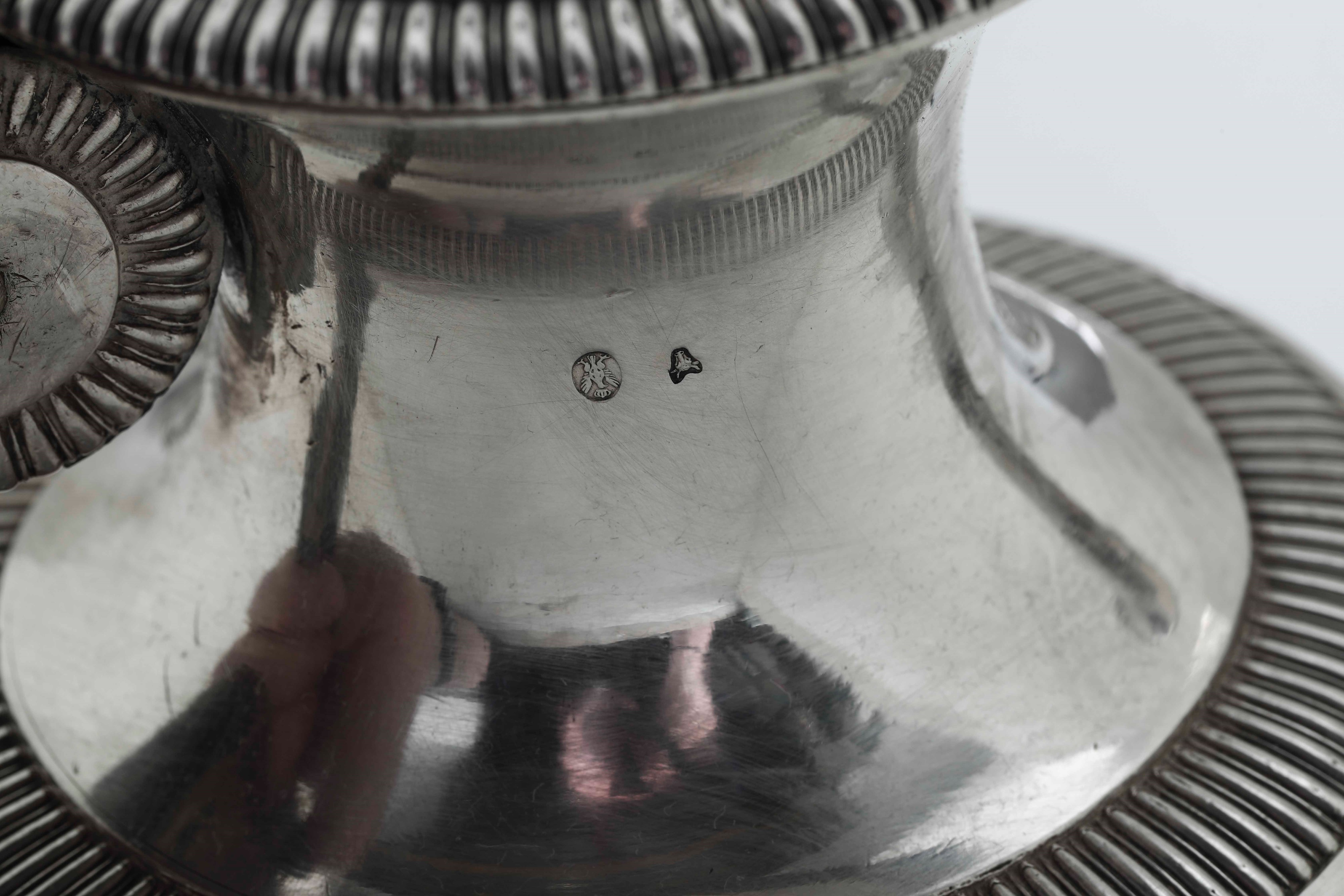 Caffettiera. Argento primo titolo fuso, sbalzato e cesellato. Torino XIX secolo. Marchi camerali e di garanzia in uso dal 1824 al 1872