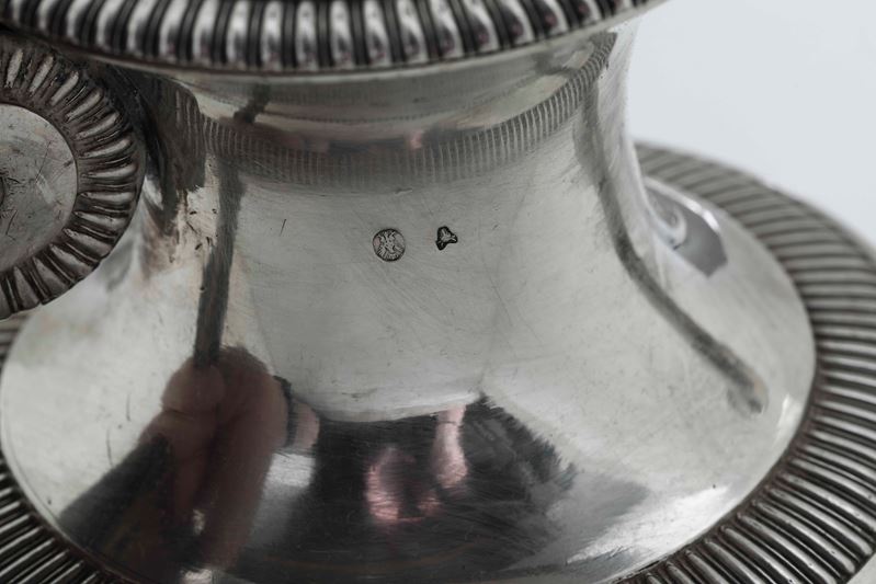 Caffettiera. Argento primo titolo fuso, sbalzato e cesellato. Torino XIX secolo. Marchi camerali e di garanzia in uso dal [..]