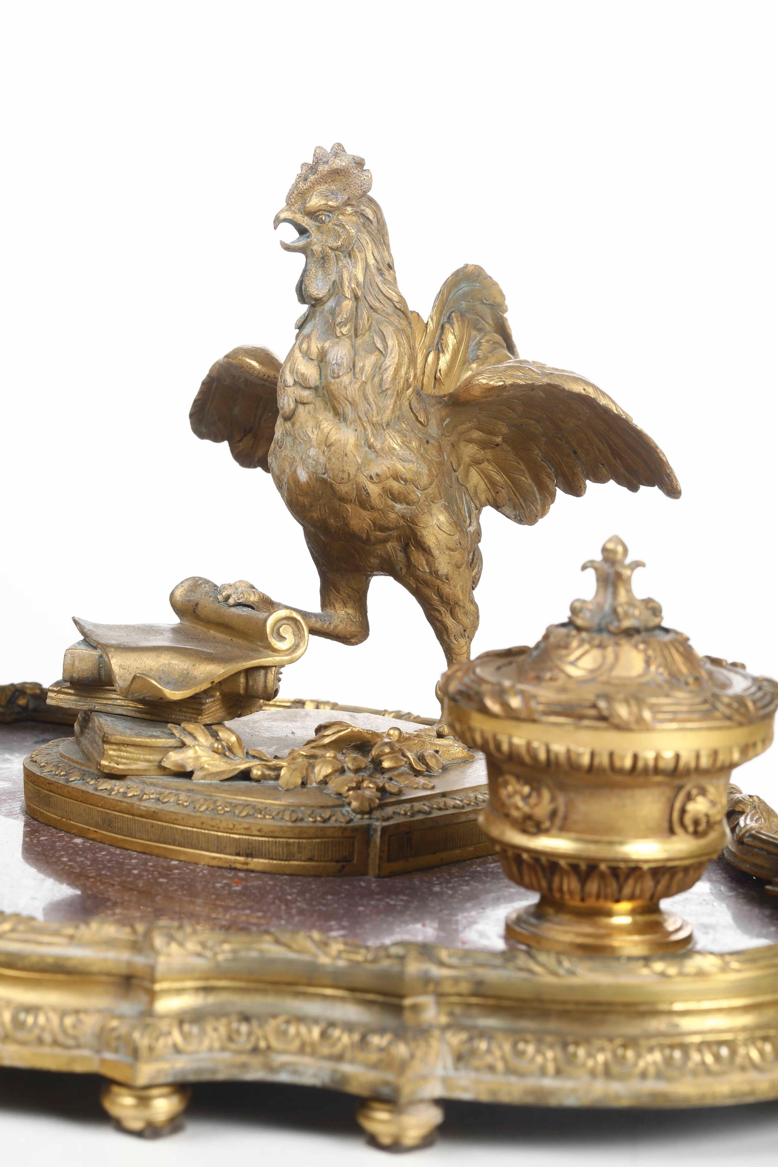 Calamaio. Bronzo fuso, dorato e porfido rosso. Francia seconda metà del XIX secolo