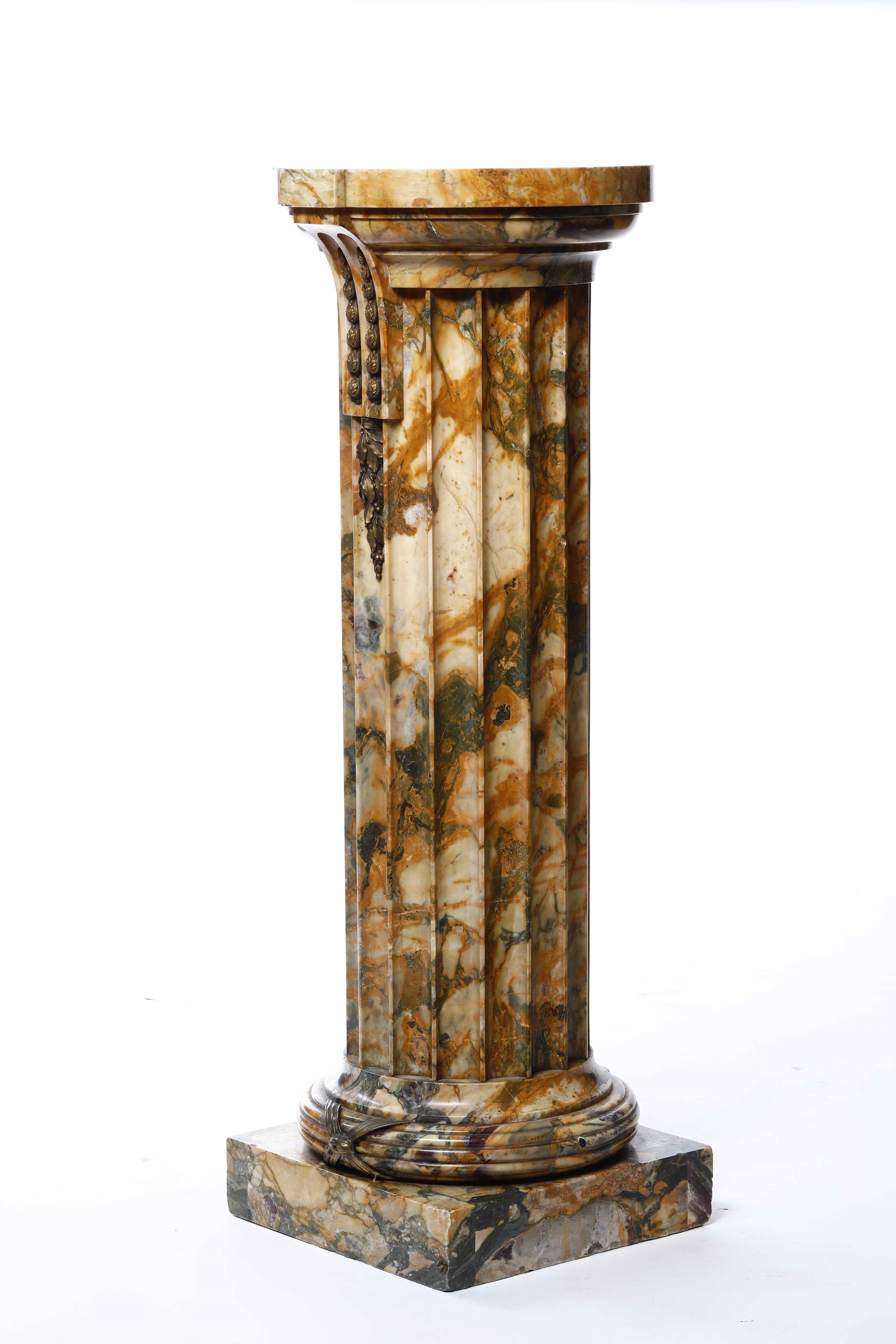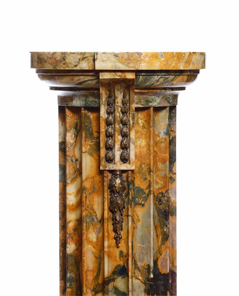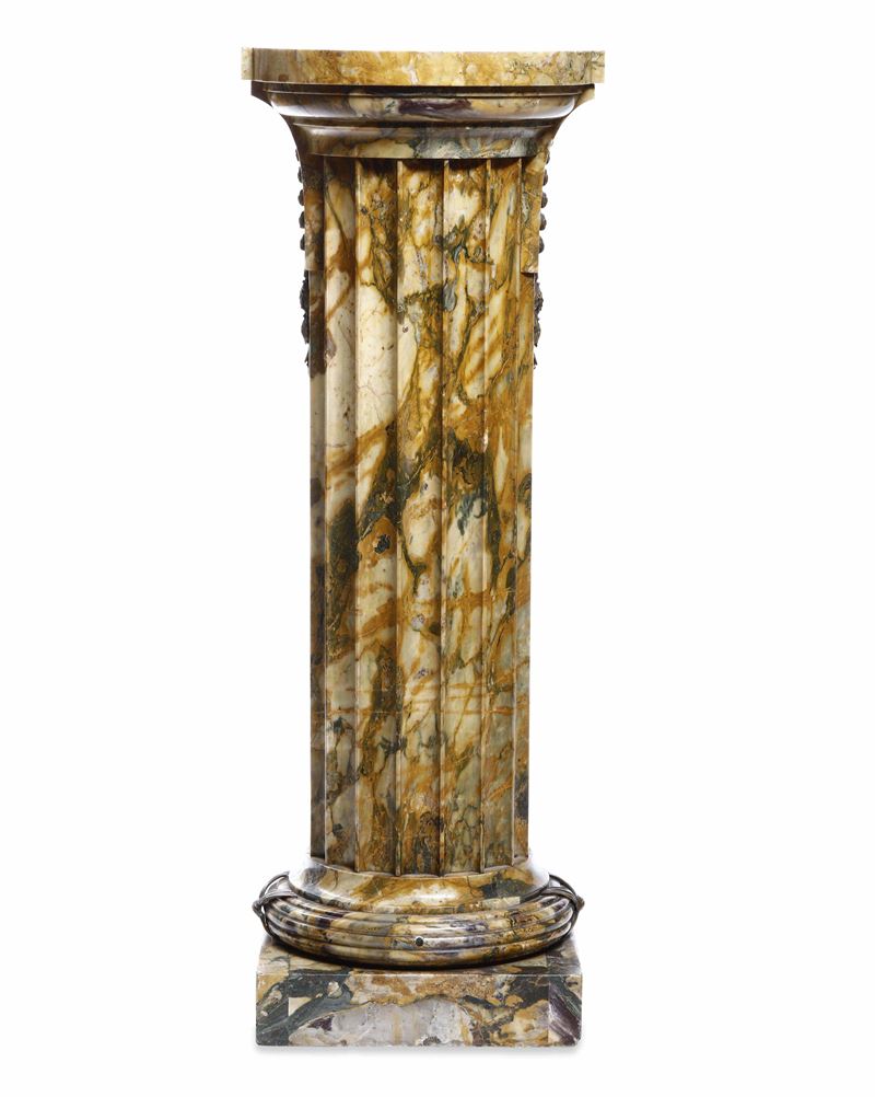 Colonna scanalata in marmo giallo con inserti in bronzo dorato. XIX-XX secolo