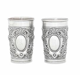Coppia di bicchieri. Argento fuso e sagomato. Argenteria artistica milanese del XX secolo. Argentiere Calderoni