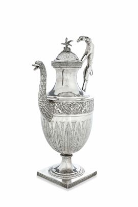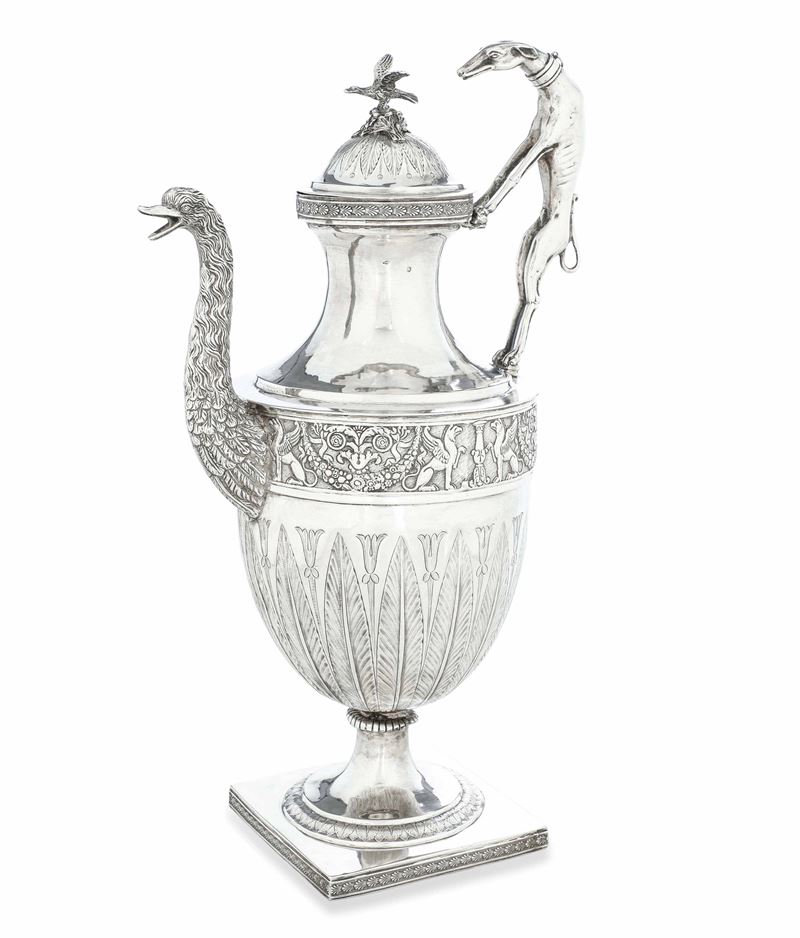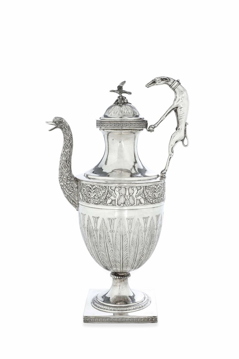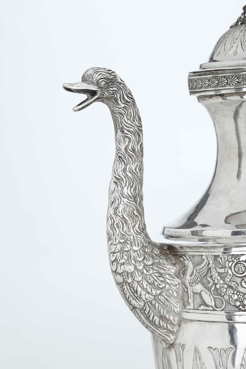 Grande caffettiera. Argento fuso, sbalzato e cesellato. Arte neoclassica romana, prima metà del XIX secolo. Maestro argentiere [..]