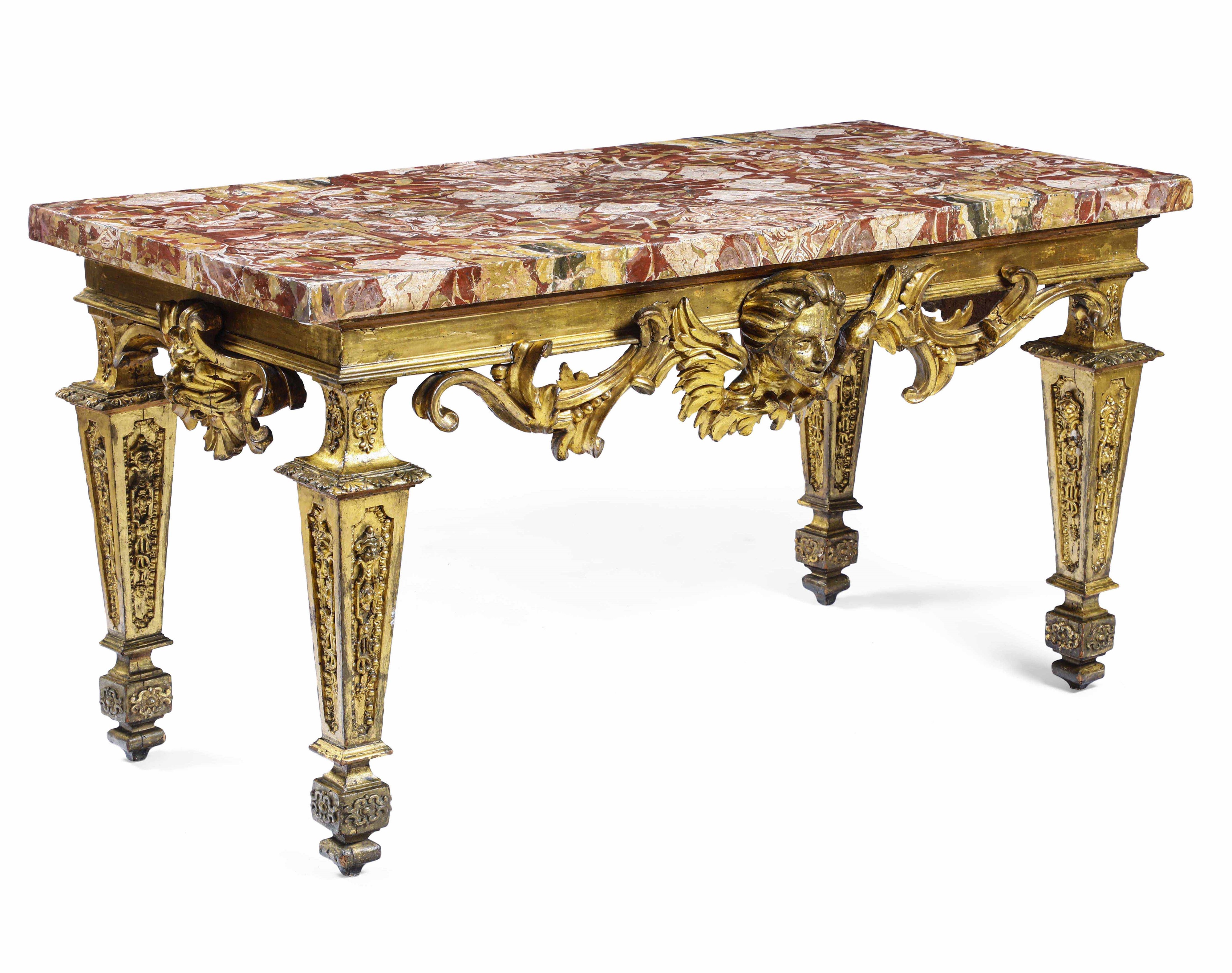 Importante tavolo a muro in legno intagliato e dorato. Roma, prima metà XVIII secolo