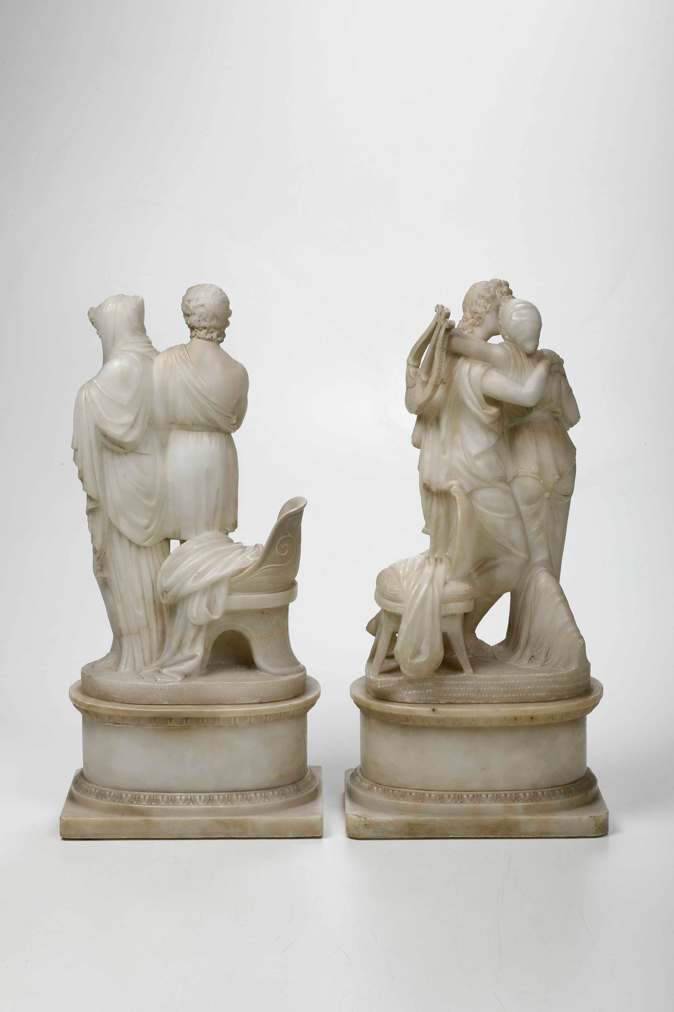 Orfeo ed Euridice. Coppia di sculture in alabastro. Arte neoclassica italiana XIX secolo