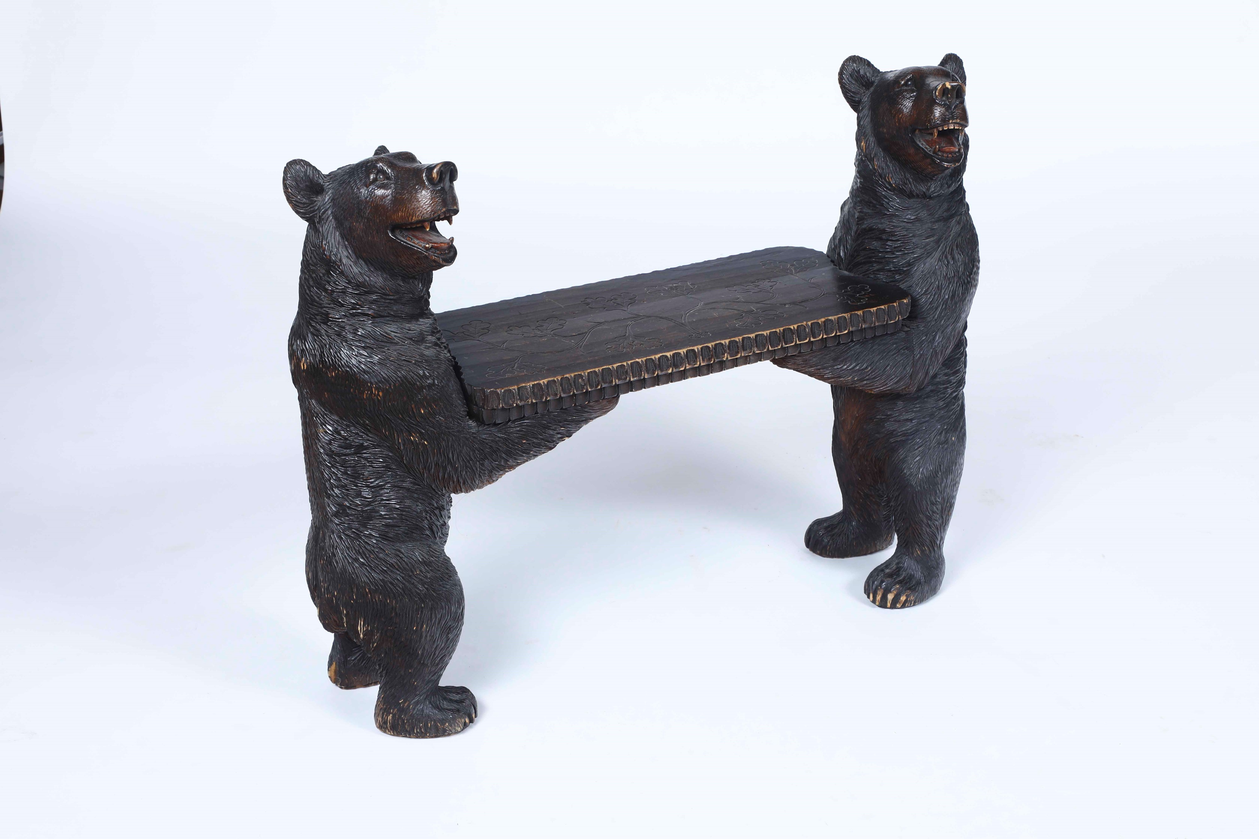 Panca con orsi “foresta nera”. Legno scolpito. Brienz, Svizzera, XIX-XX secolo