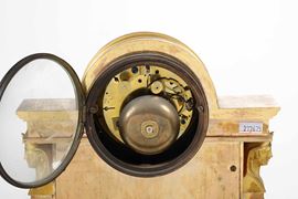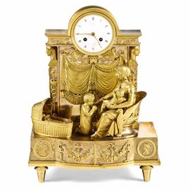 decorata da gruppo rappresentante la maternità e da elementi di gusto neoclassico. Quadrante smaltato a numerazione romana in nero per le ore e araba per la minuteria firmato Thomire a Paris
