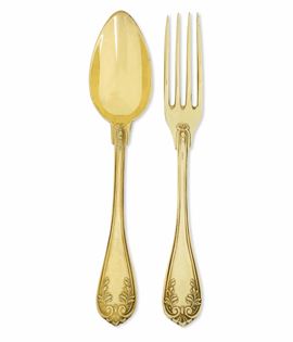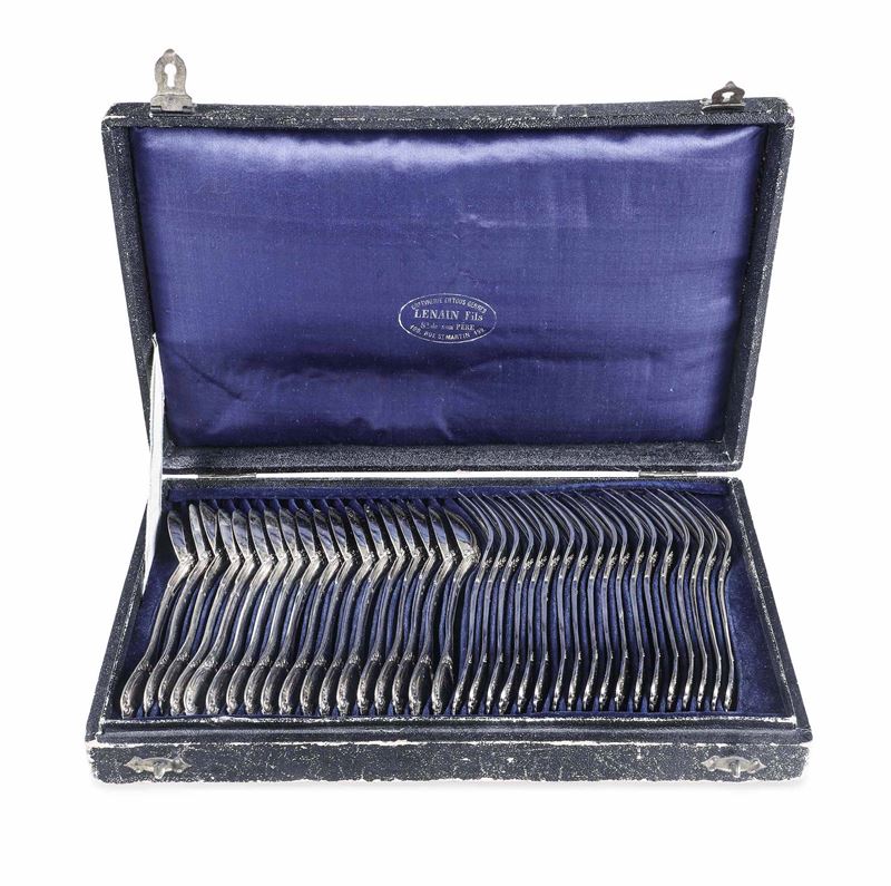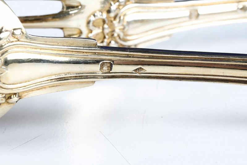Set di posate. Argento fuso e dorato. Parigi XX secolo. Argentiere Lenain