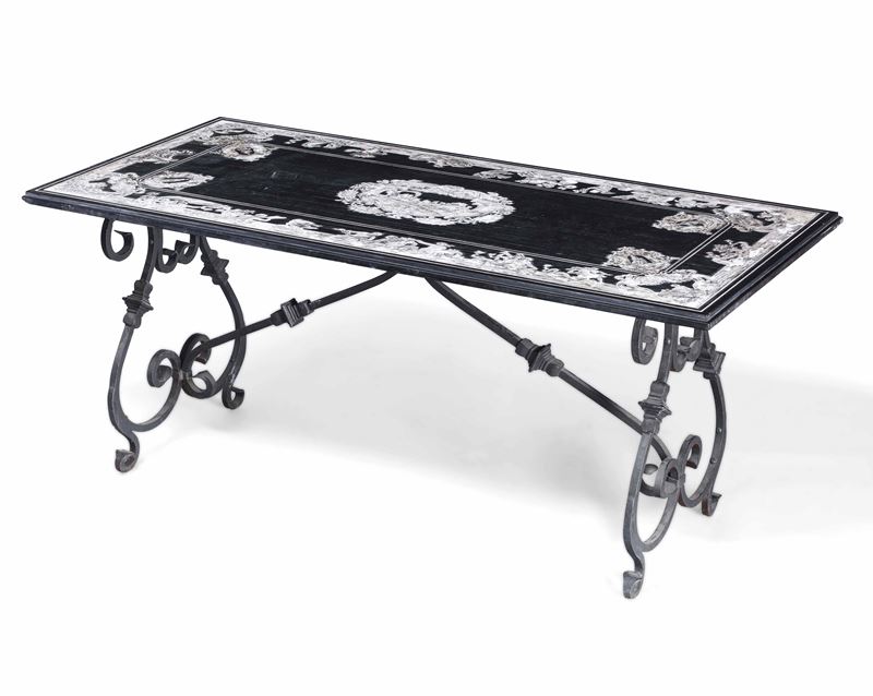 Tavolo con piano in marmo e scagliola. XIX secolo