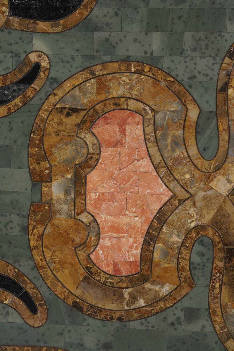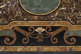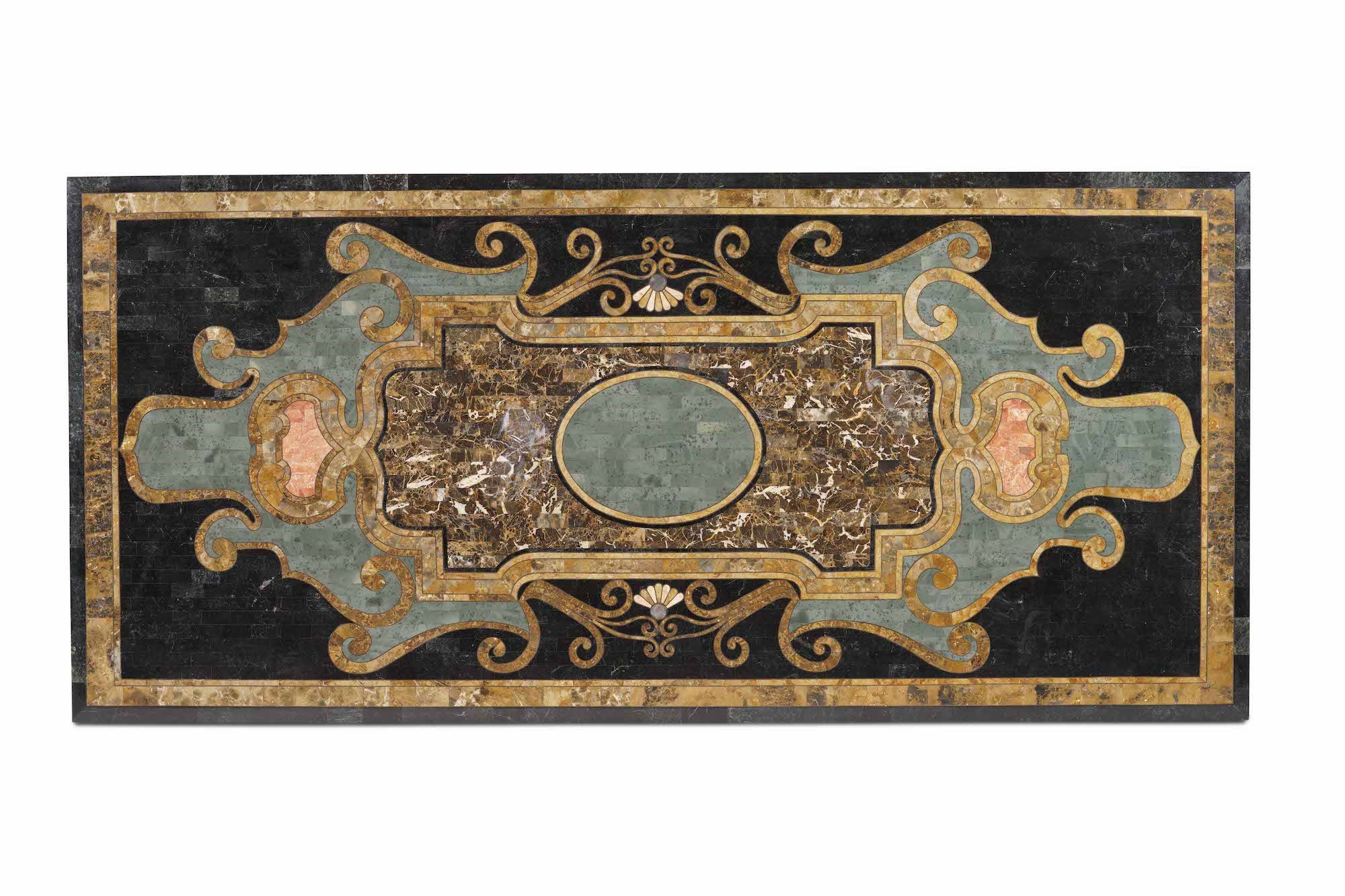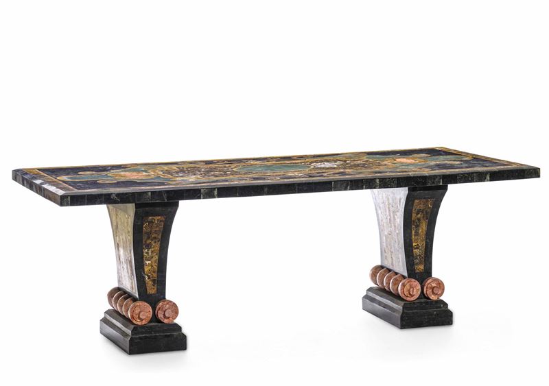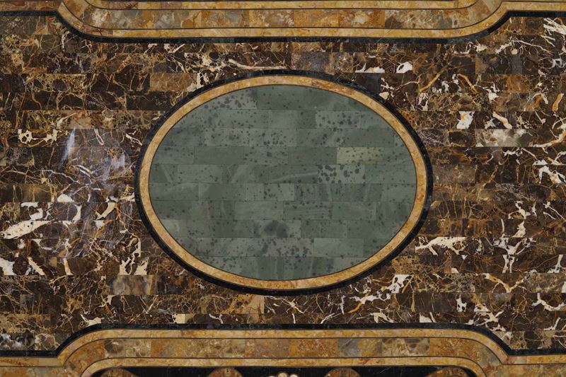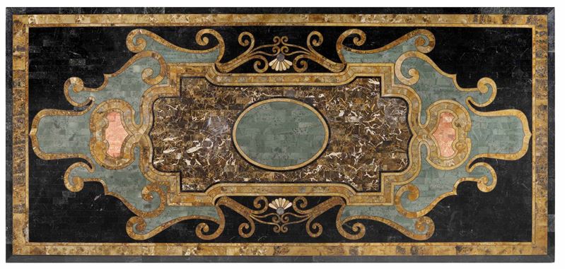 Tavolo in legno lastronato in marmi colorati. XIX-XX secolo
