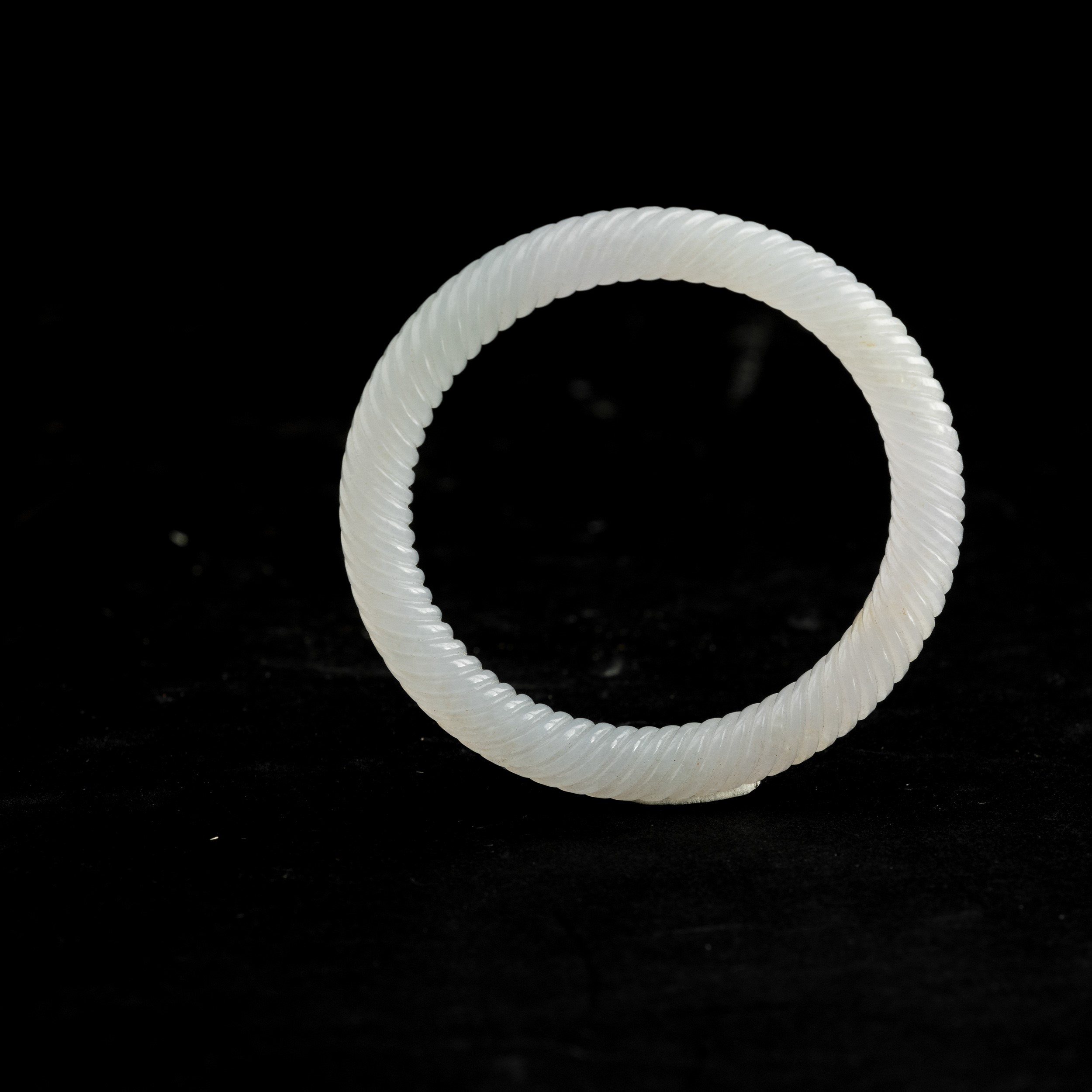 Bracciale scolpito in giada bianca con decoro a torchon, Cina, XX secolo