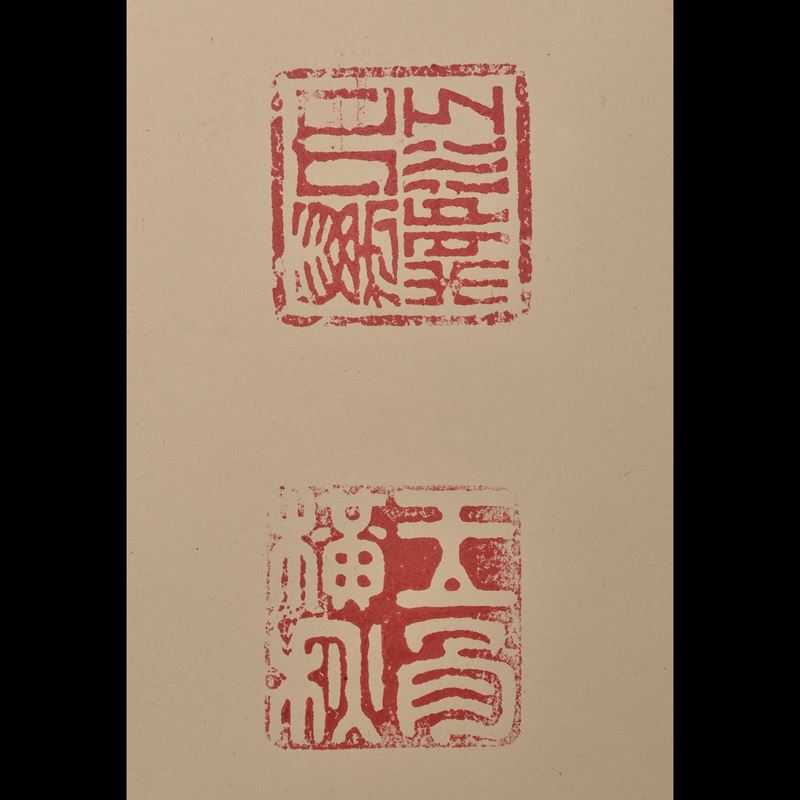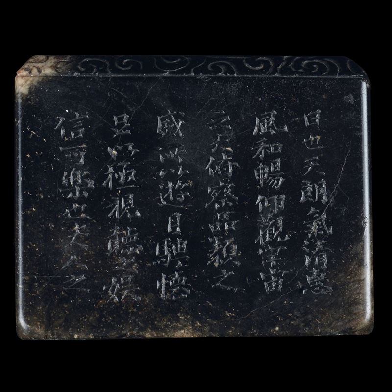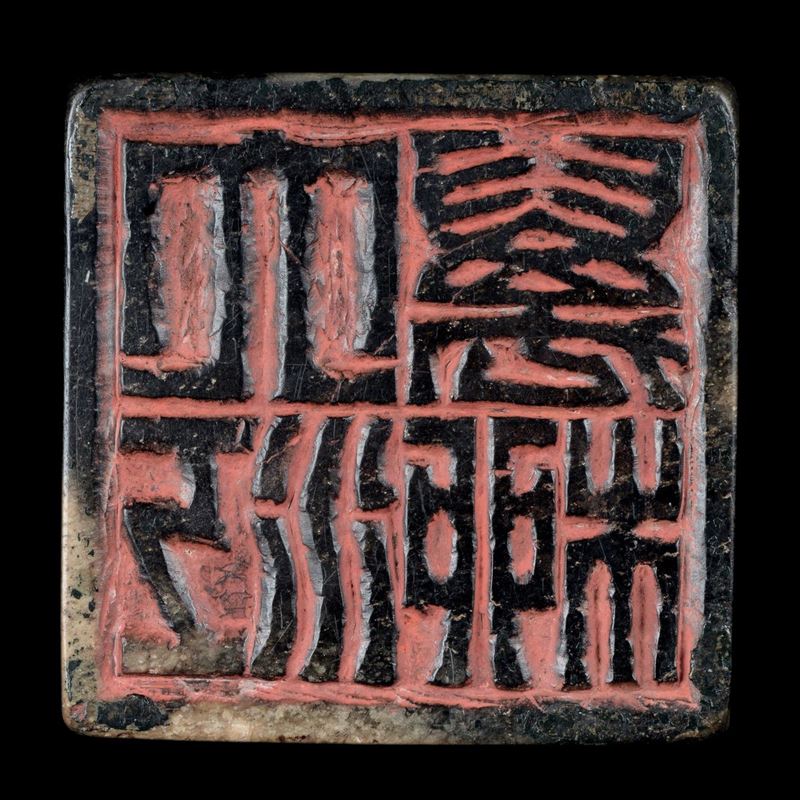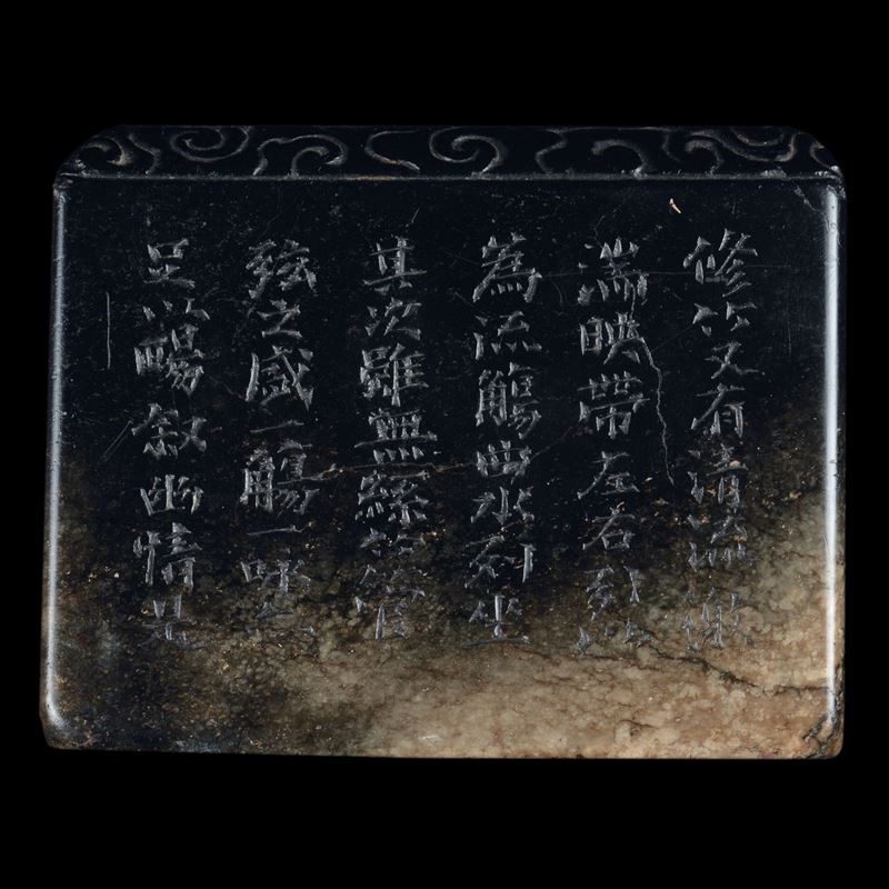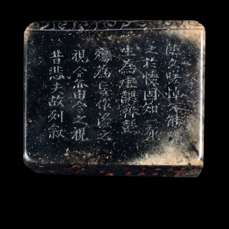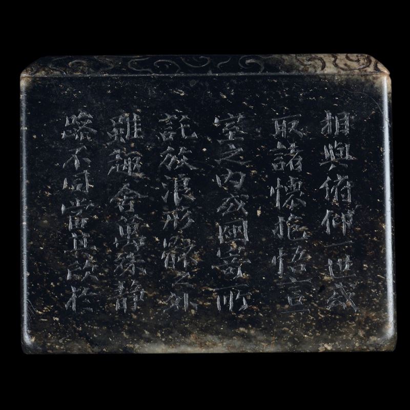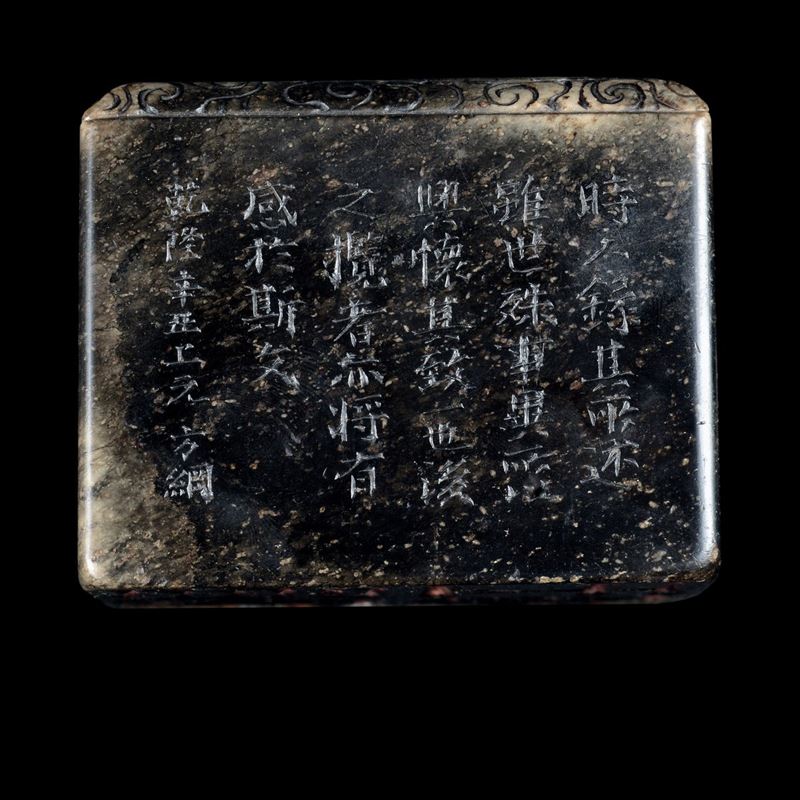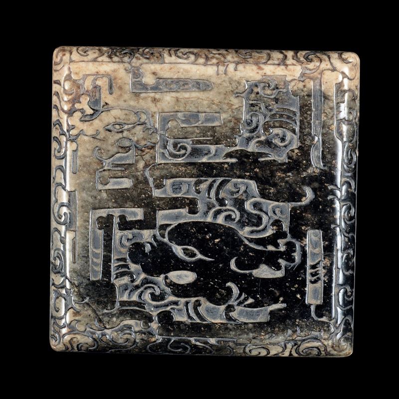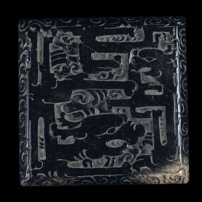 Coppia di rari sigilli in giada con figure di draghi incise e iscrizioni, Cina, Dinastia Qing, epoca Kangxi (1662-1722)