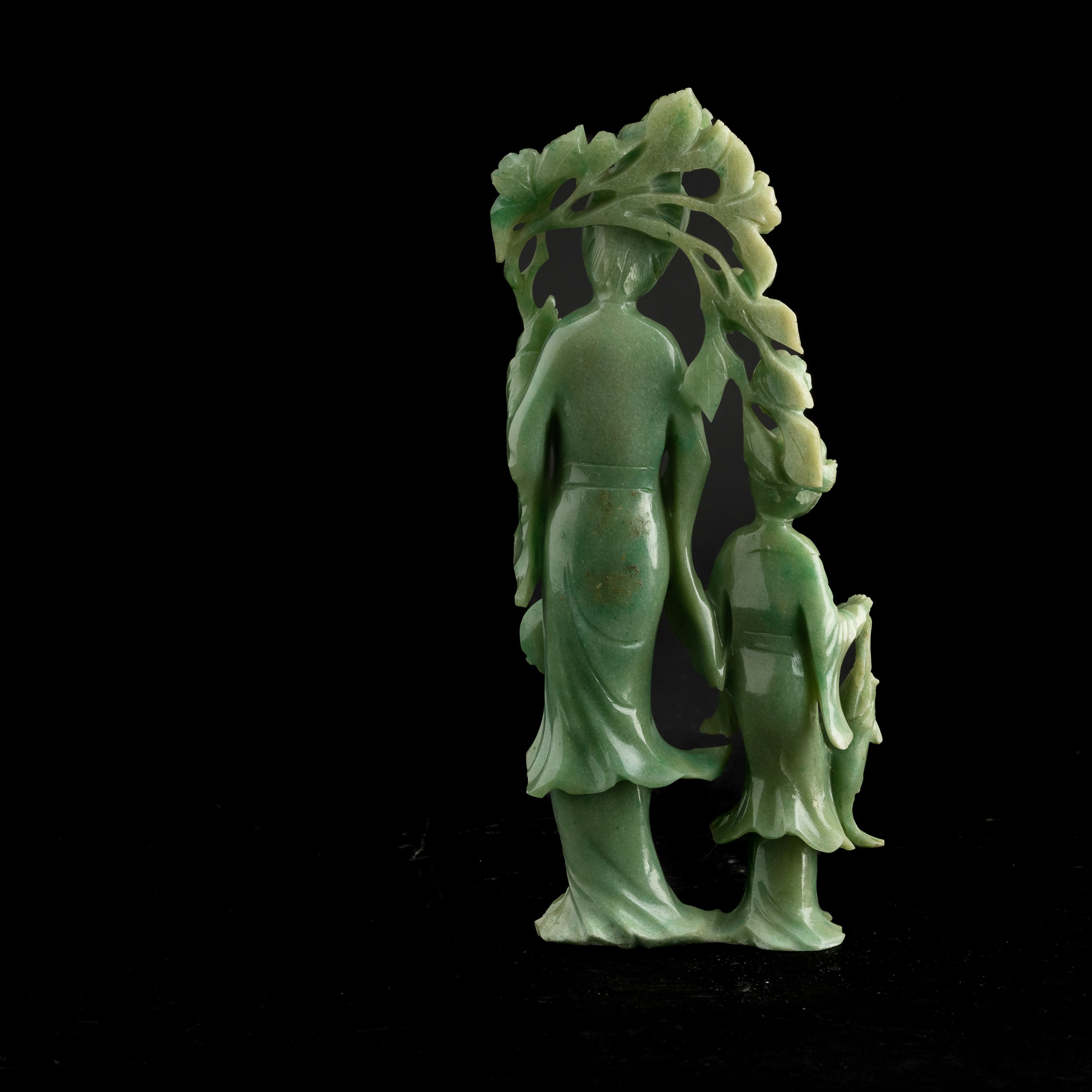 Gruppo scolpito in giada raffigurante fanciulla con bambino, Cina, Dinastia Qing, XIX secolo