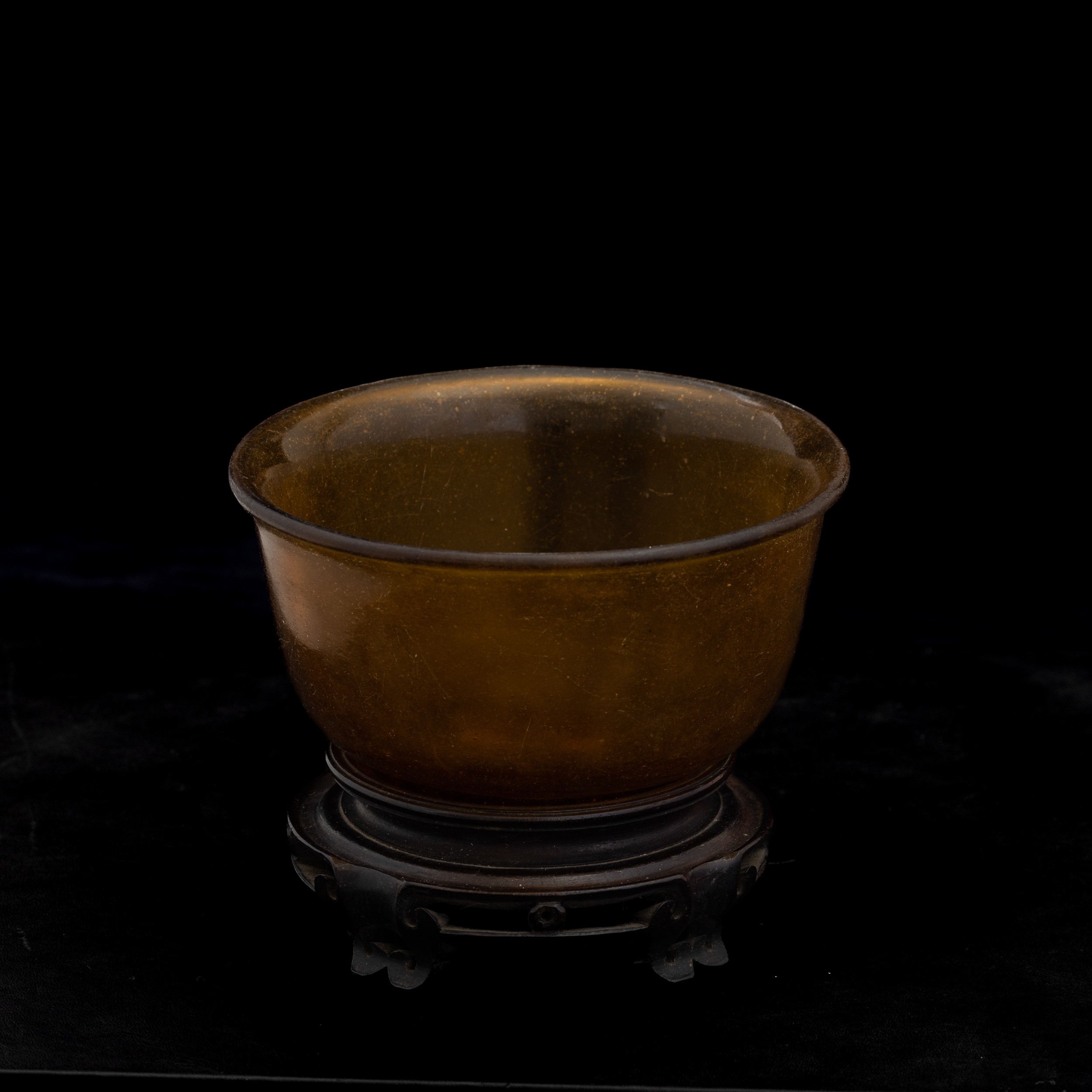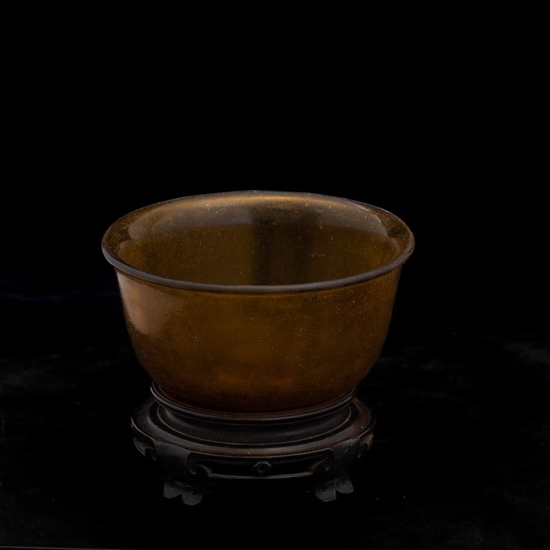 Piccola ciotola in vetro di Pechino color ambra, Cina, Dinastia Qing, epoca Qianlong (1736-1796)