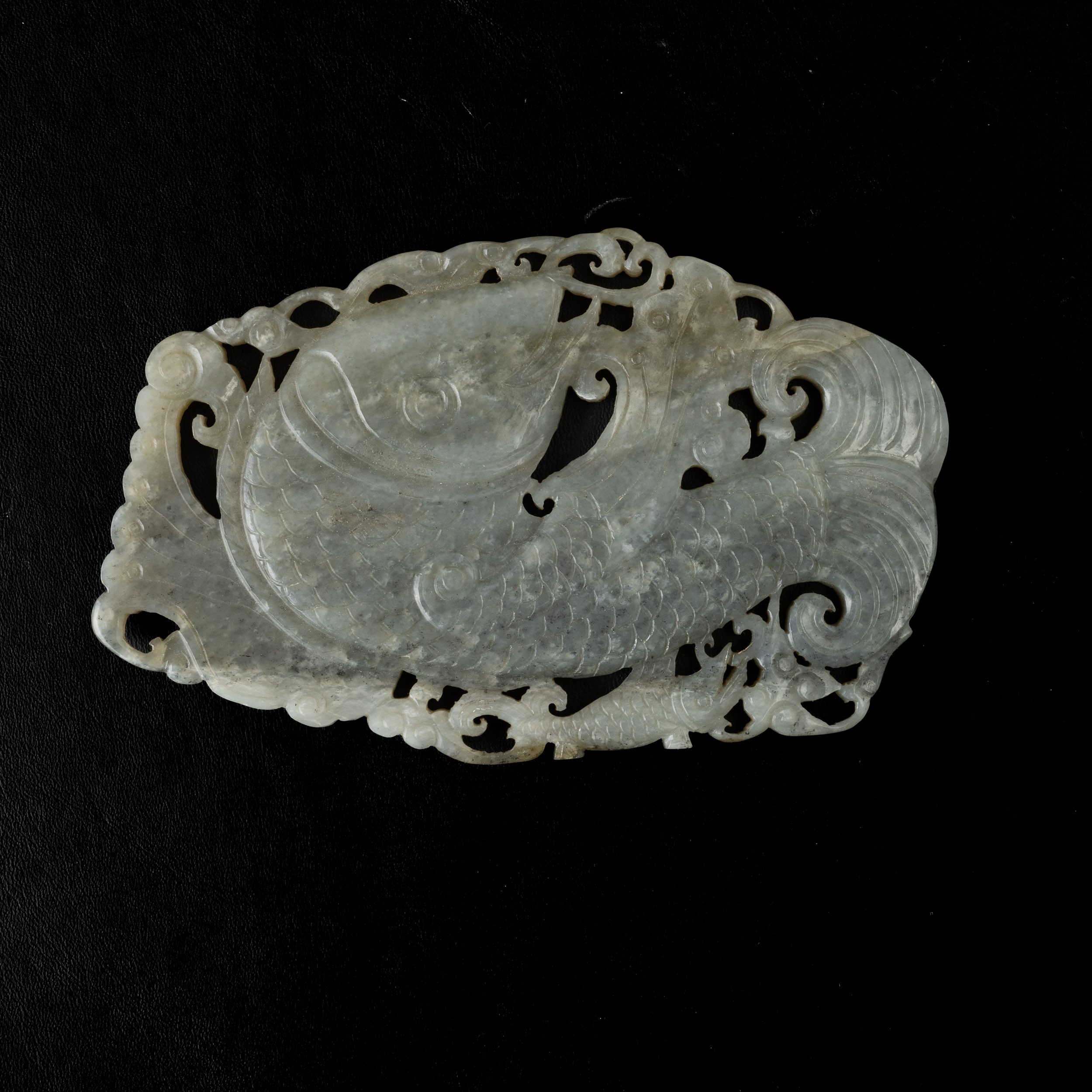 Placca scolpita in giada con figura di pesce a traforo, Cina, Dinastia Ming, XVII secolo