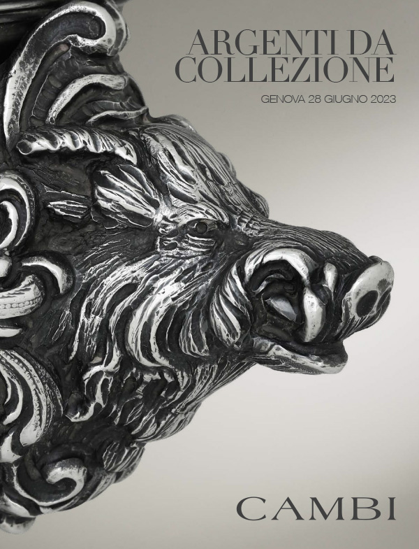 Corpo circolare mistilineo spartito da larghe nervature. Prese sagomate con teste leonine contrapposte e motivi fogliacei. L'elaborato modello delle prese riscontrabile in altre opere del famoso argentiere trova riscontro quasi palmare con quelle appartenenti [..]