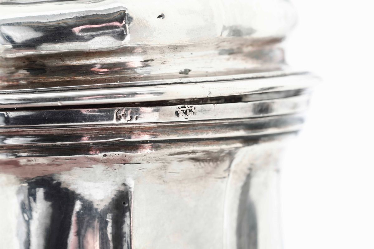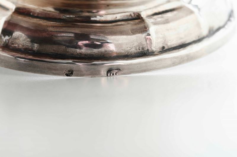 Caffettiera. Roma, seconda metà del XVIII secolo. Maestro argentiere Bonaventura Sabatini (1731-1766) o Giovanni Battista Sabatini (1766-1813) con marchio di bottega all'insegna del "nome di Gesu' ". (Marchi consunti di difficile lettura)