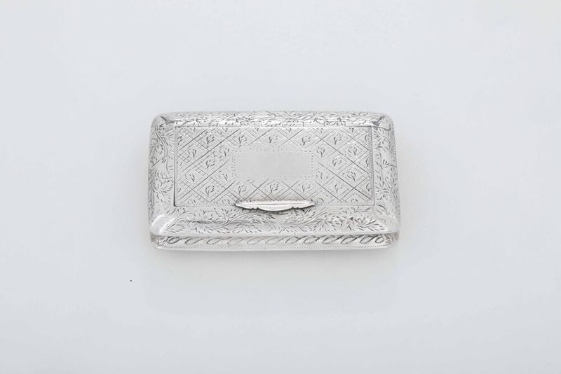 Tabacchiera. Edimburgo 1818, marchio dell'argentiere (Robert Keay I o Robert Kerr)