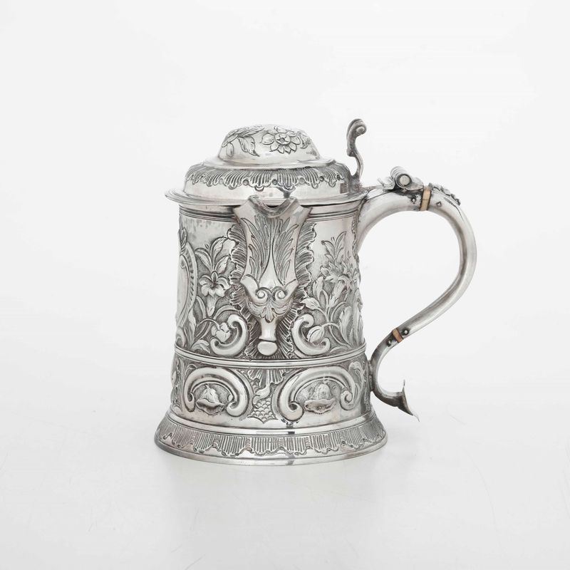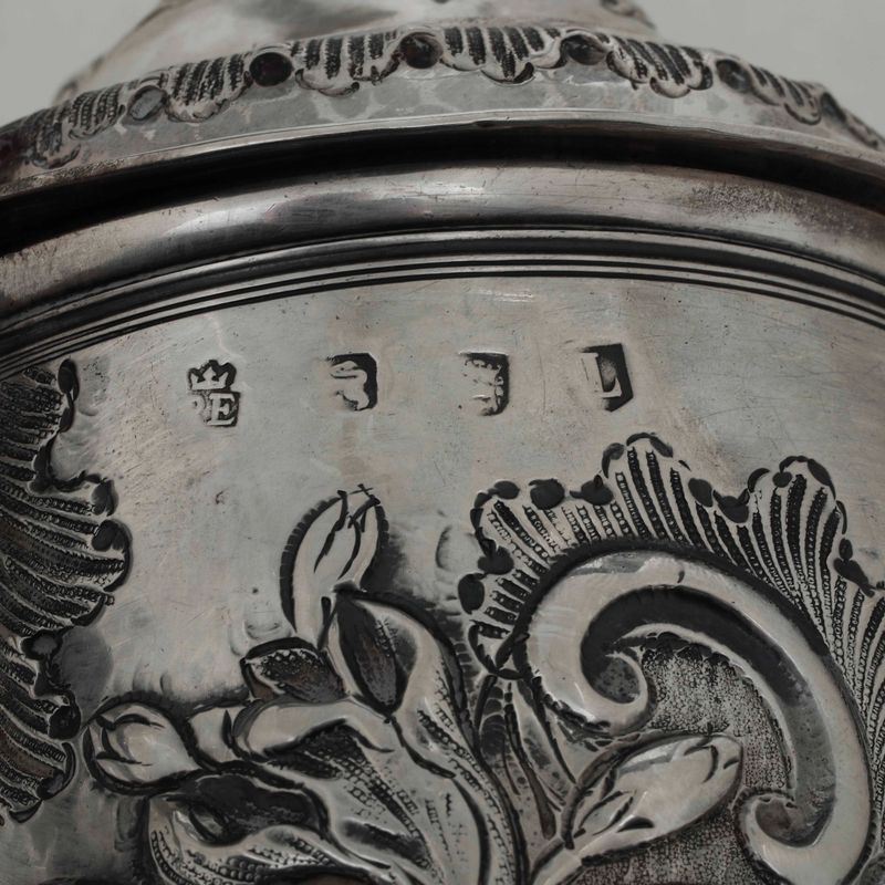 Ricchi decori sbalzati con motivi floreali e volute (probabilmente antichi ma non coevi)