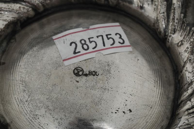 Servizio da tè e caffè con vassoio. Argenteria artistica italiana, prima metà del XX secolo
