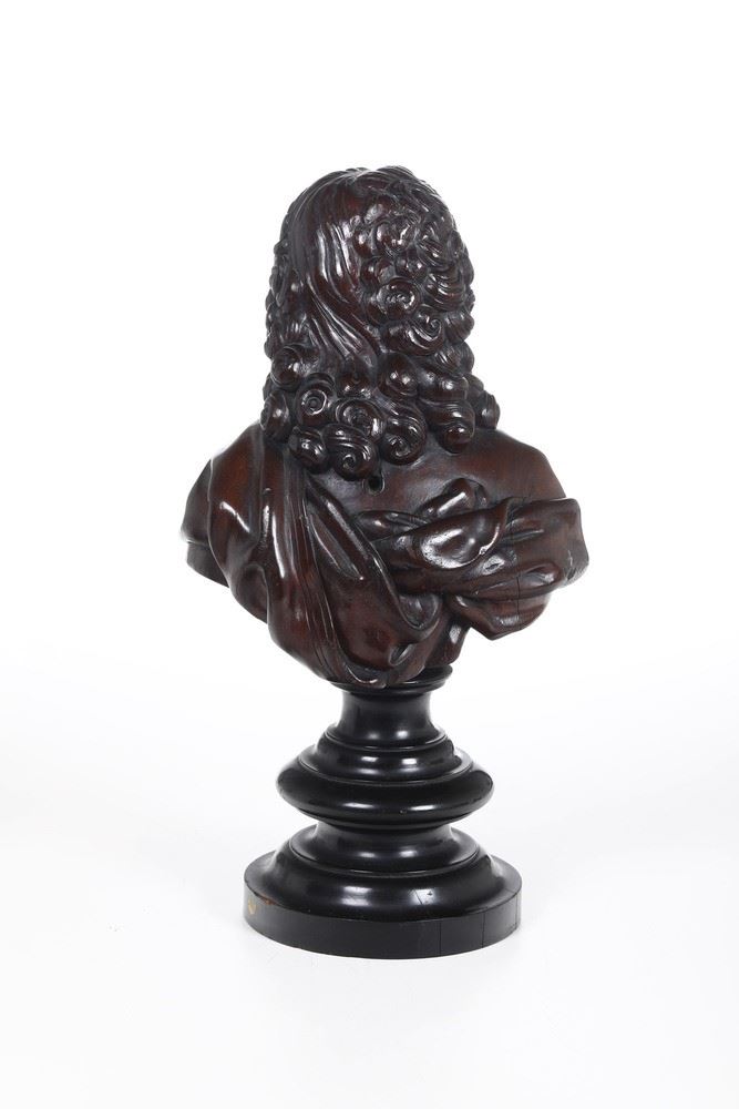 Lego scolpito e patinato. Base in legno tornito ed ebanizzato