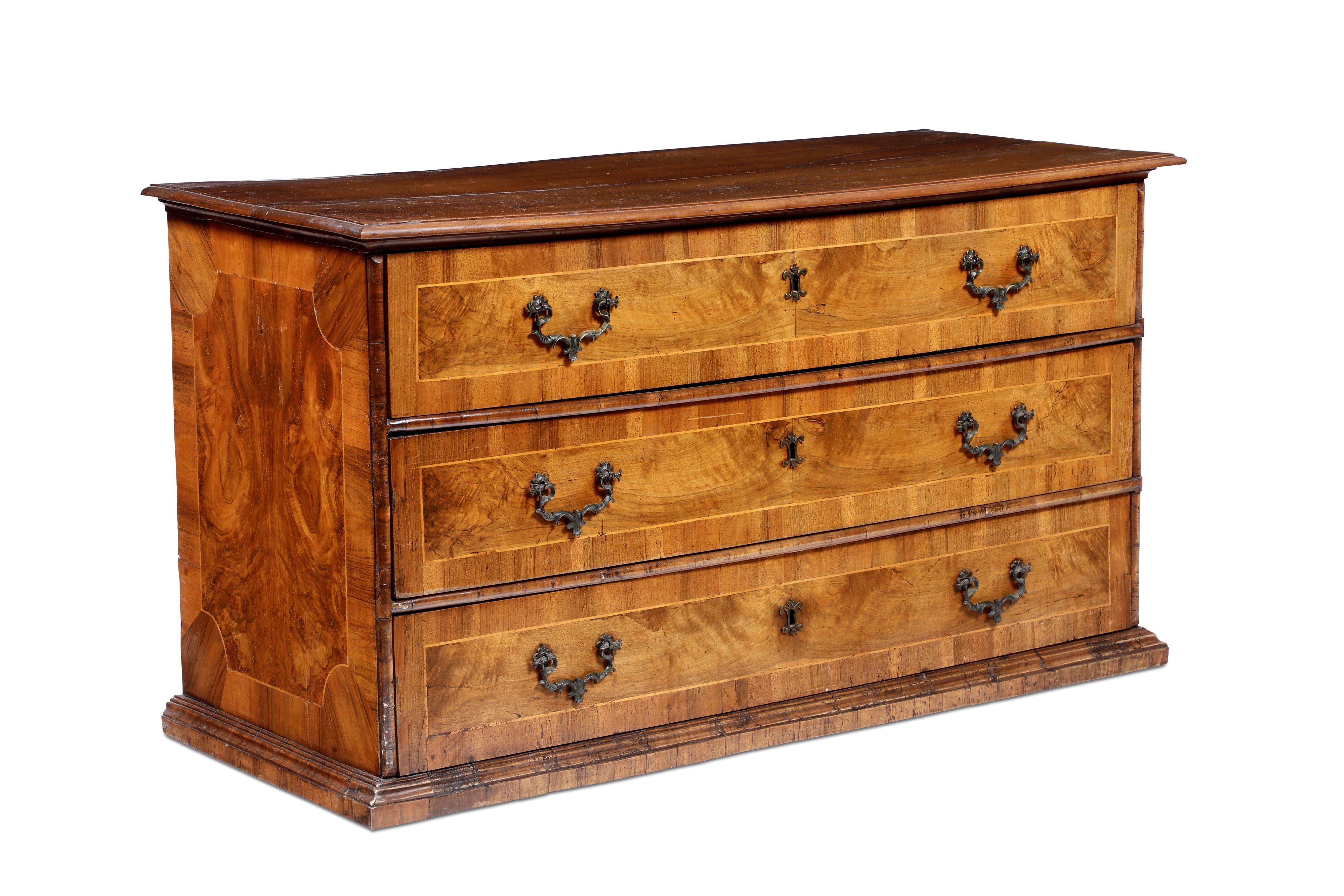 Cassettone lastronato in legno di noce. XVIII-XIX secolo