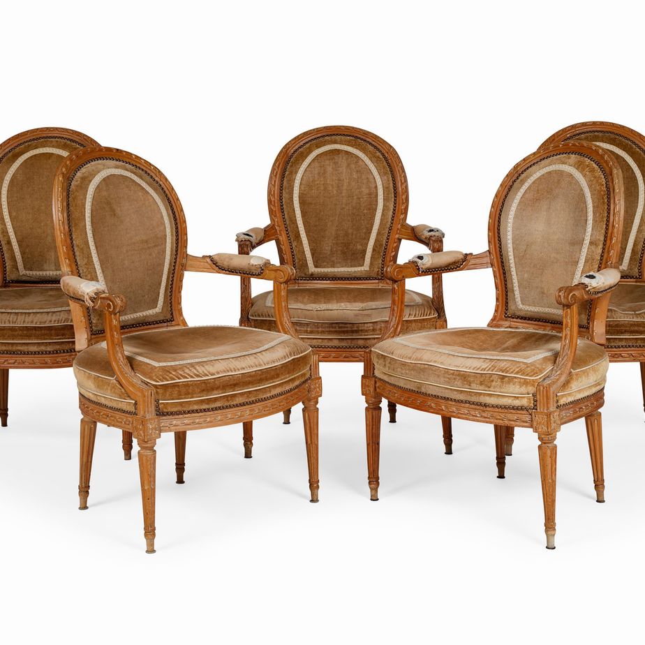 Cinque poltrone in legno intagliato. Francia XIX secolo