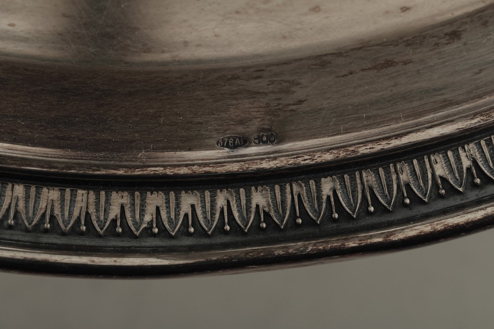 Coppia di alzate. Argenteria italiana del XX secolo. Argentiere Peruggia & C, Alessandria