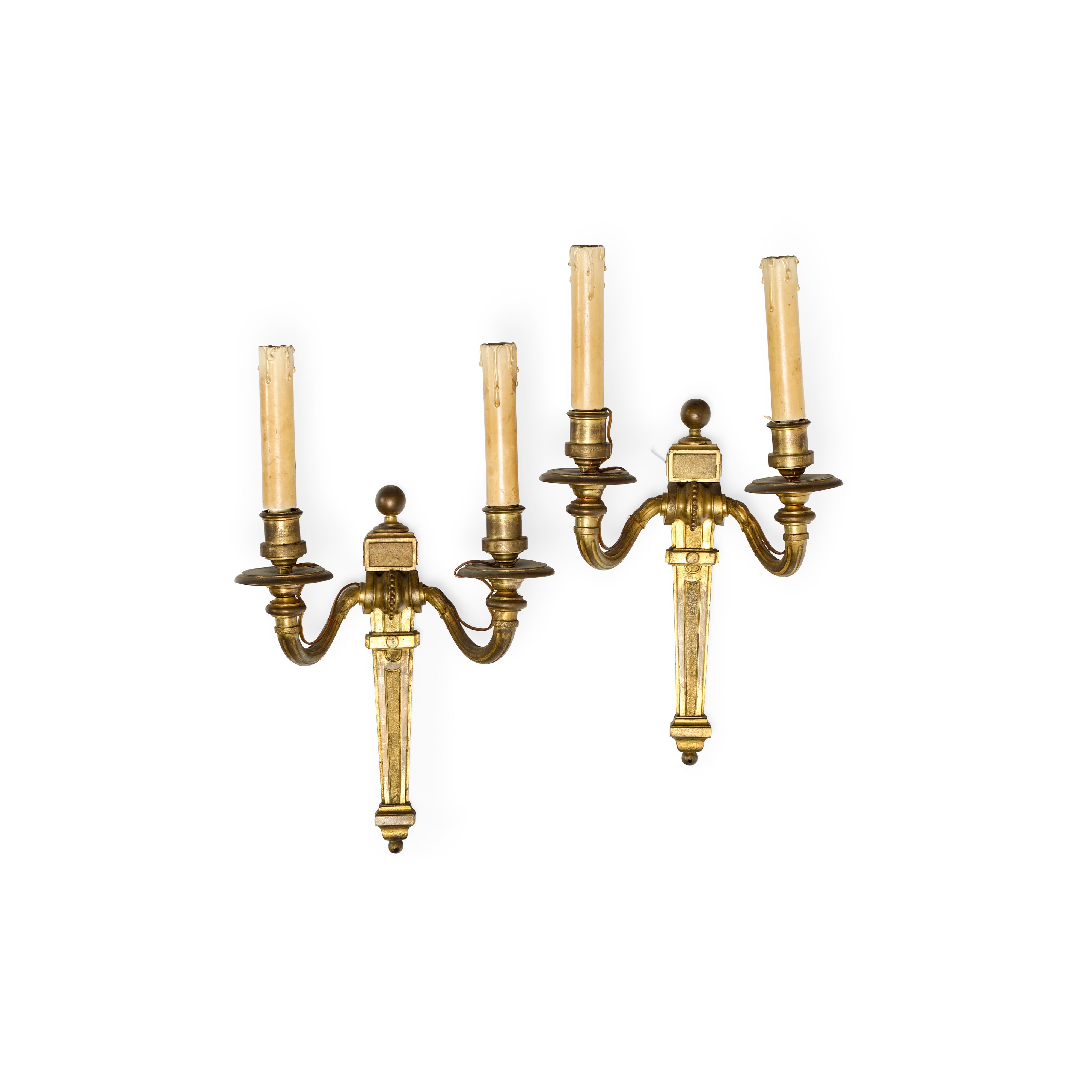 Coppia di appliques in bronzo dorato a due luci. XIX secolo