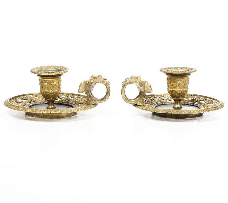 Coppia di bugie. Bronzo fuso, traforato e cesellato. Fonditore del XIX secolo