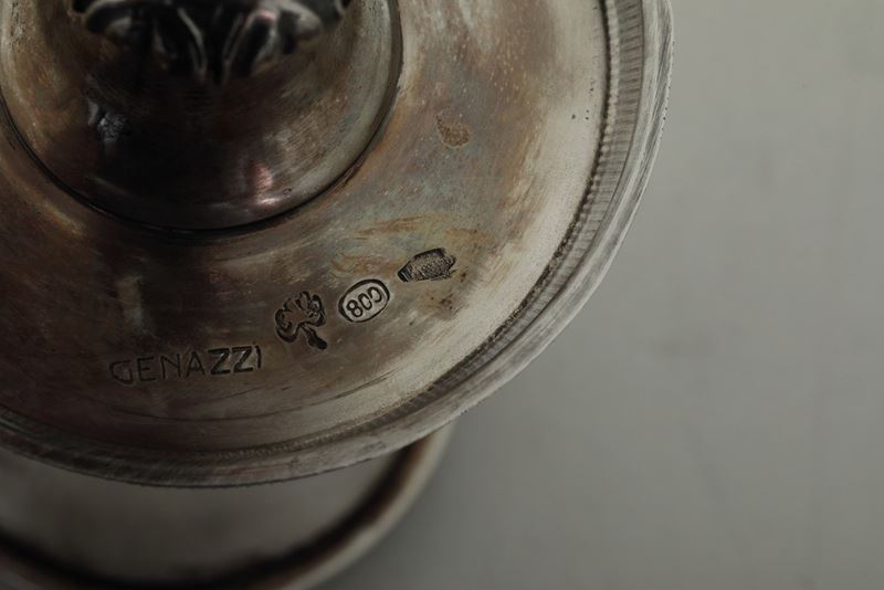 Coppia di candelieri. Argenteria artistica milanese della prima metà del XX secolo. Argentiere Genazzi