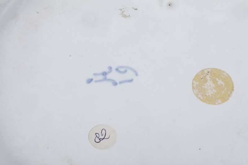 Maiolica policroma a gran fuoco. Marca: "JH 19" in blu. Diametro: cm 22,6. Conservazione: un piatto in ottimo stato; l'altro con sbeccature ai bordi