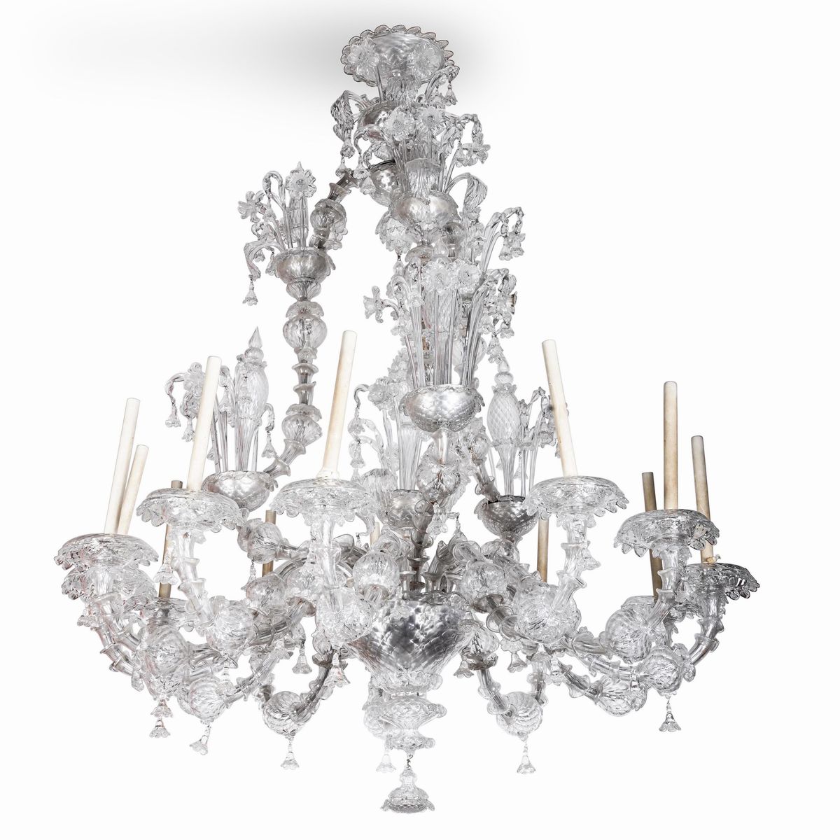 Grande lampadario in vetro di Murano a dodici luci. XIX secolo