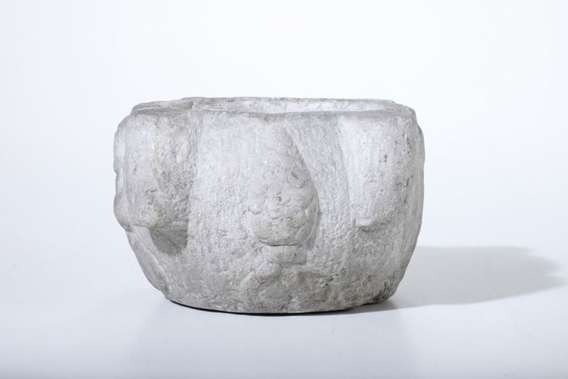 Mortaio in pietra scolpita. Lapicida del XVI secolo