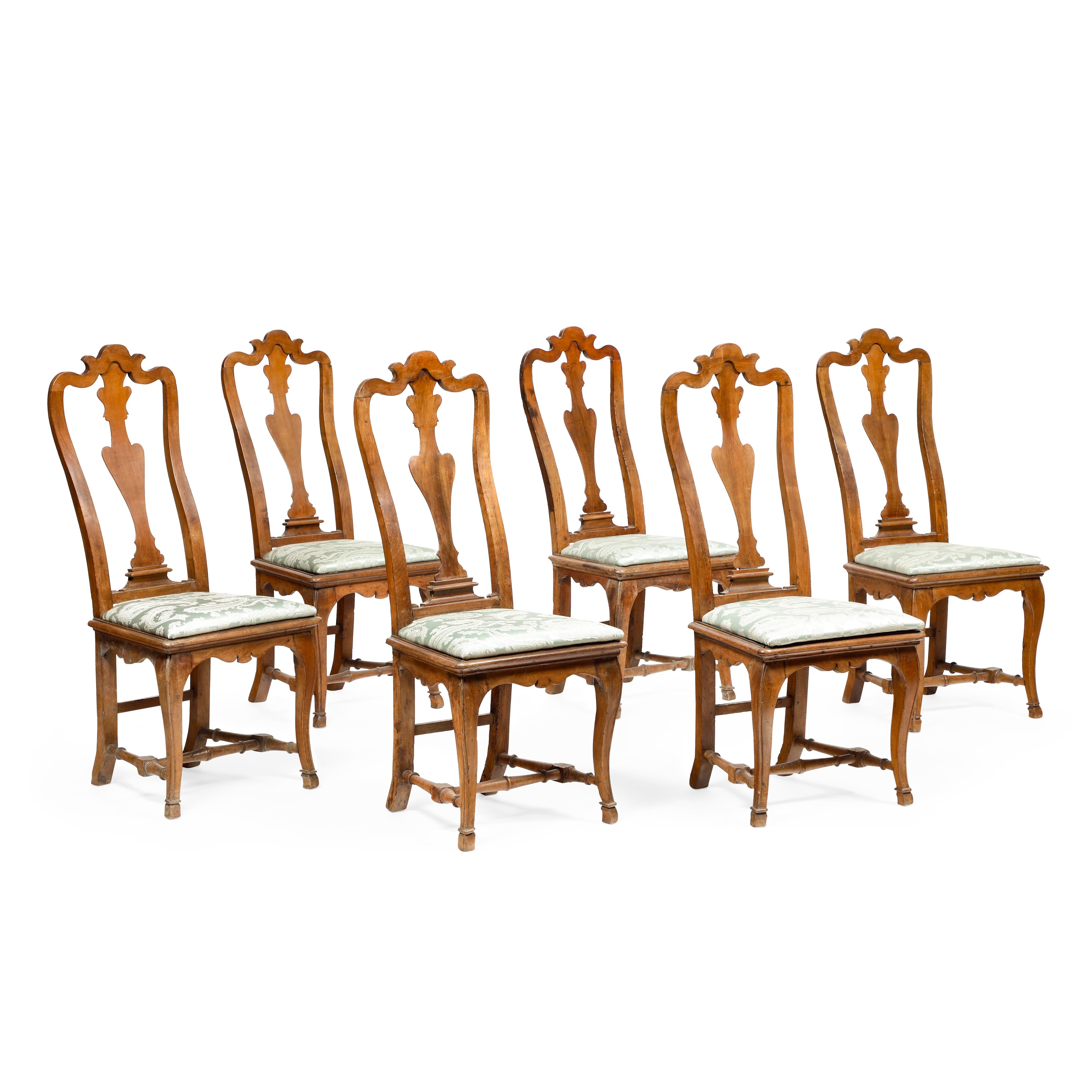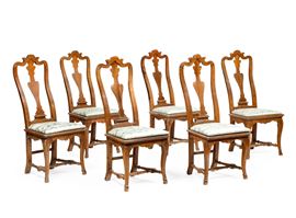 Sei sedie "a pattona" in legno intagliato, Lucca XVIII secolo