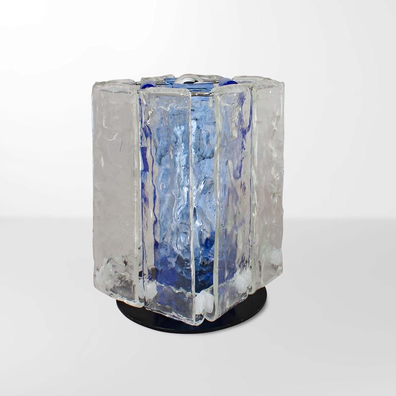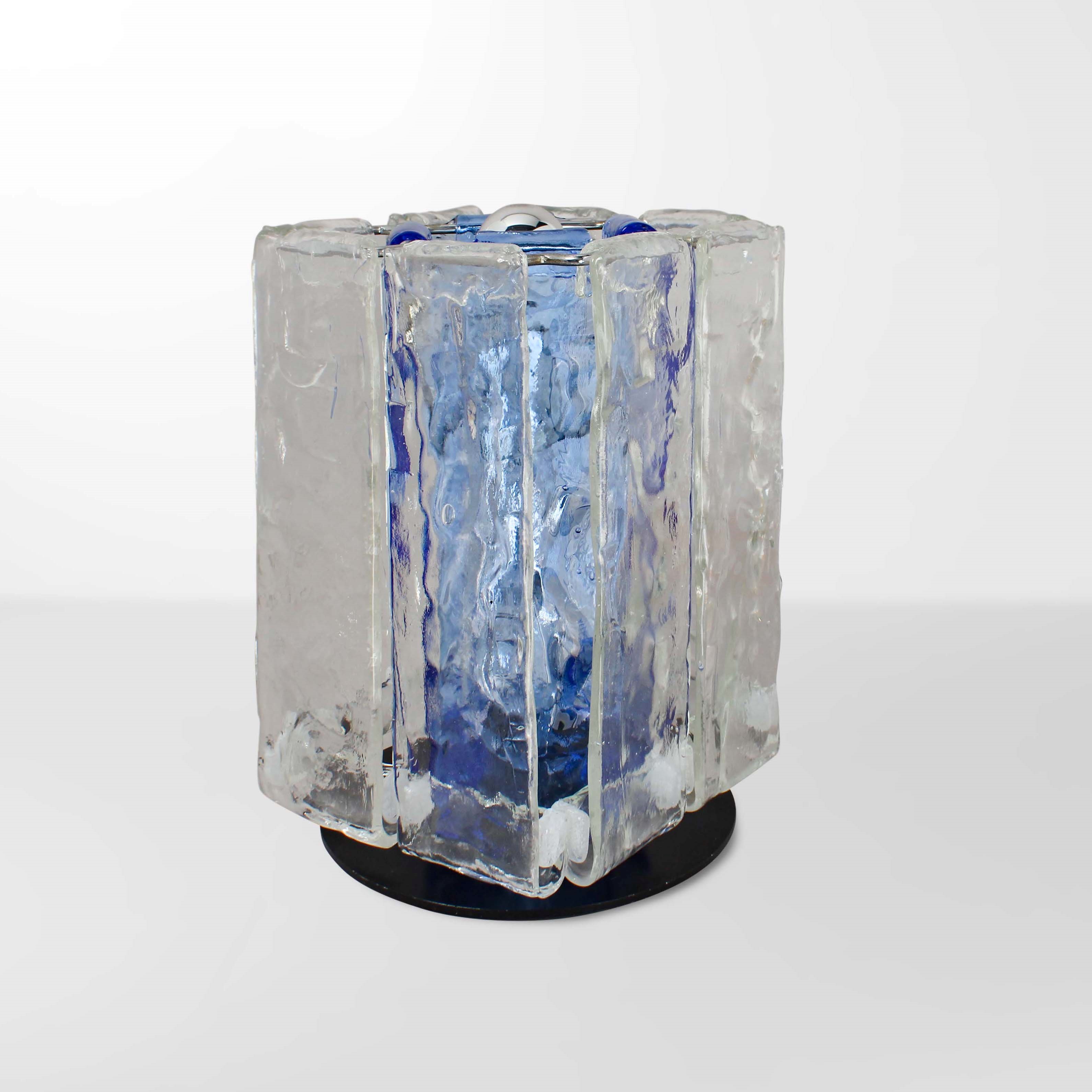 Struttura in metallo e metallo cromato con elementi diffusori in vetro di Murano.