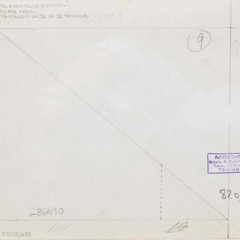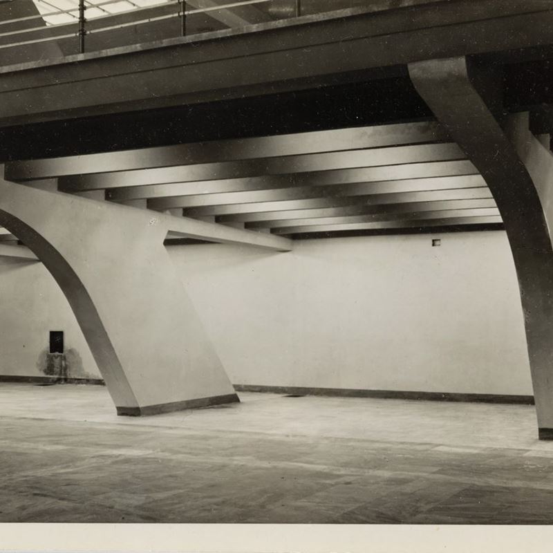 lotto formato da tre scatti fotografici Foto Moisio, Torino (Palazzo delle Esposizioni Torino, Teatro Nuovo Riattato, Galleria del Padiglione Agnelli), 1950/1960