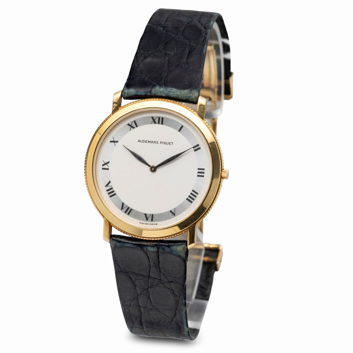 Elegante Extrapiatto in oro giallo 18k carica manuale, quadrante Argentè bitonale con numeri Romani e lancette a foglia