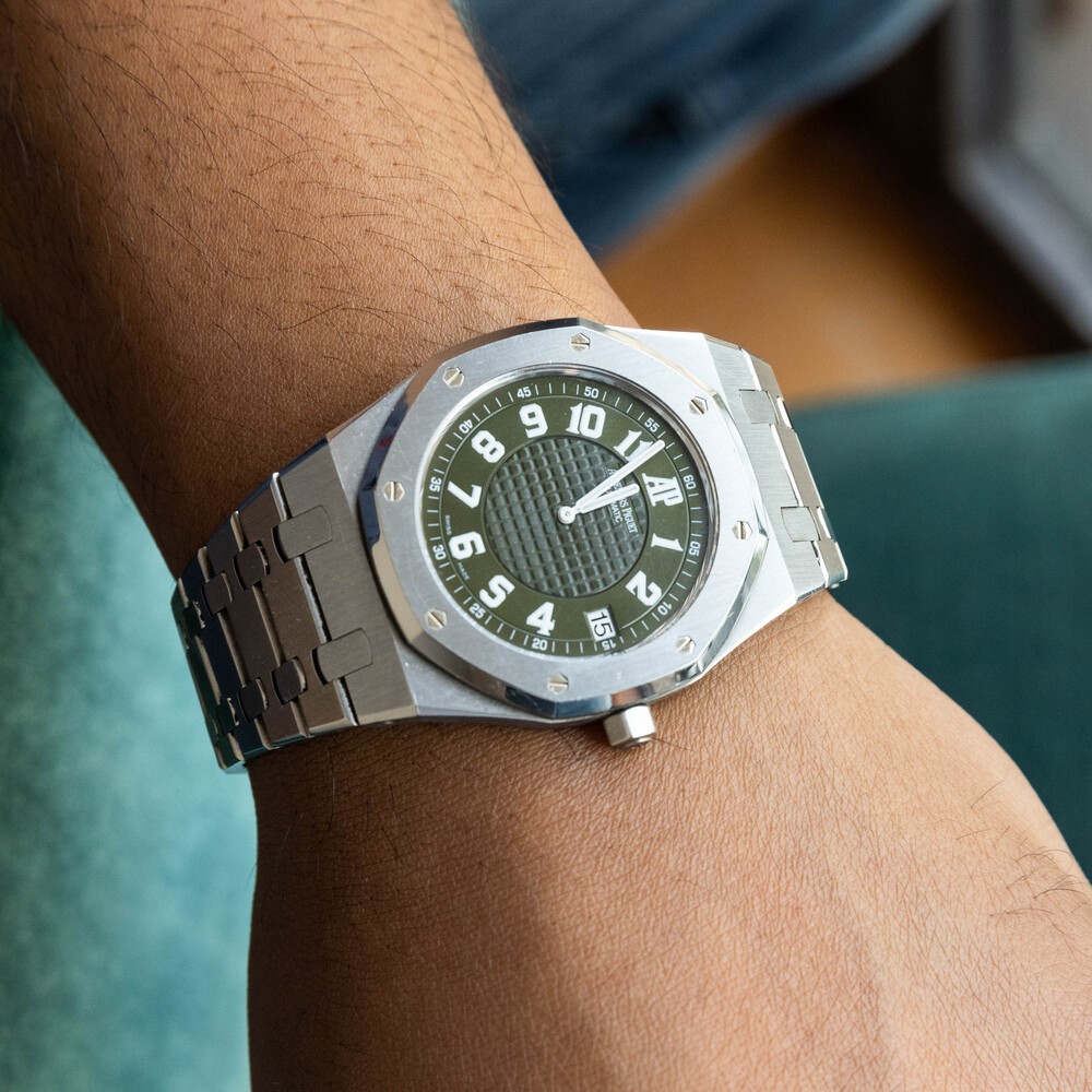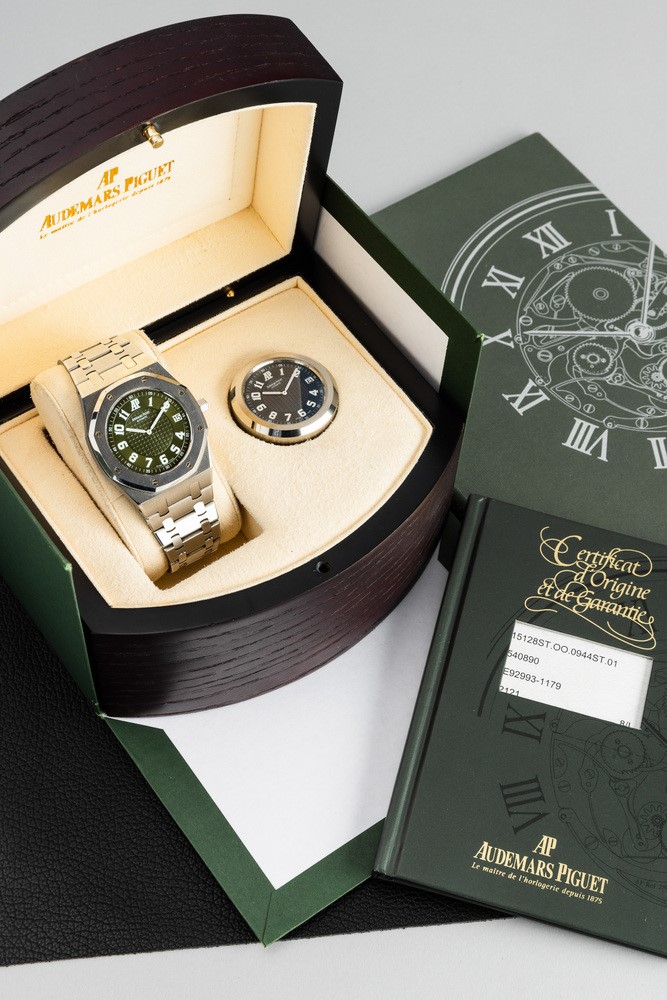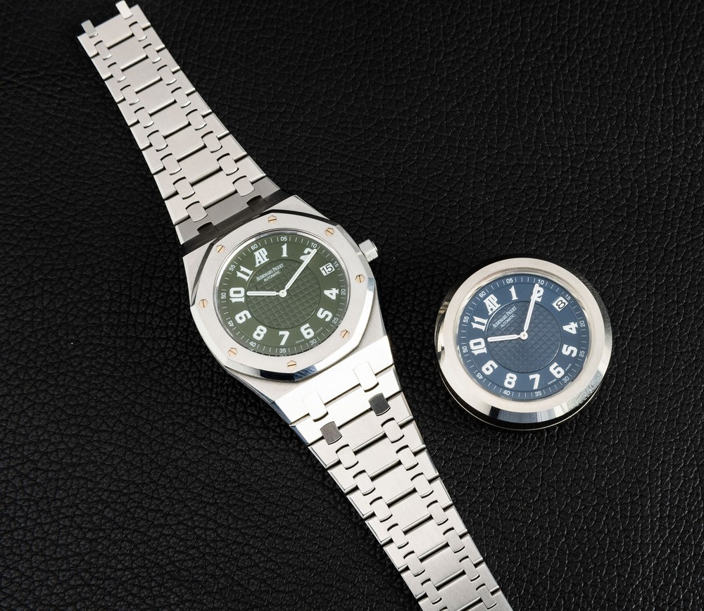 Raro e ricercato Royal Oak ref 15128ST in acciaio edizione limitata a 50 esemplari, realizzato per il mercato italiano, con doppio quadrante verde e blu