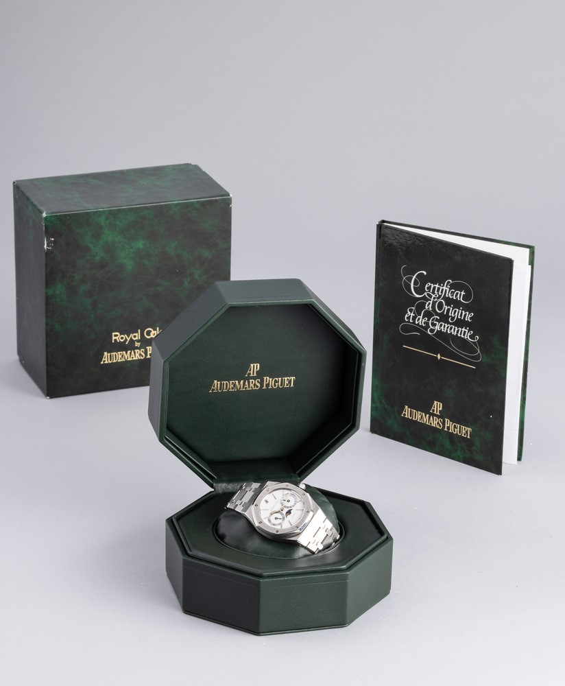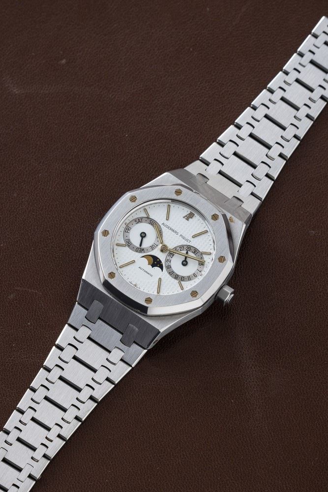 Sportivo ed elegante Royal Oak Day-Date con fasi lunari, automatico quadrante bianco petit Tapisserie con indici a bastone, [..]