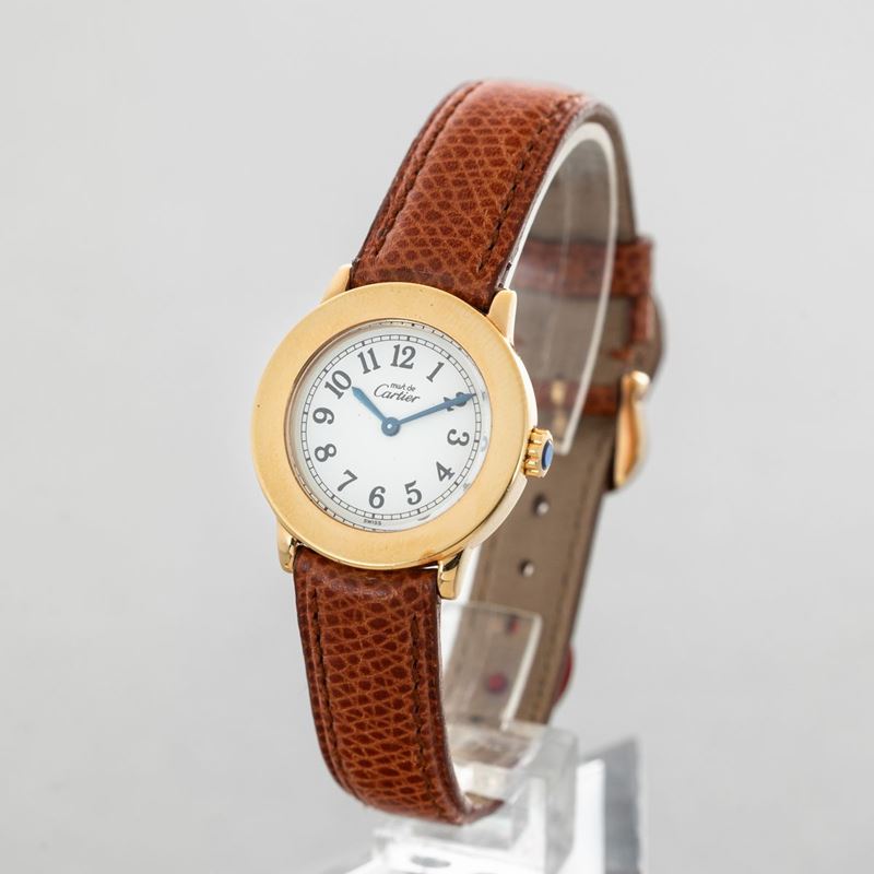 Cartier Must Ronde in argento 925 laminato in oro 18k, quadrante Argentè con numeri arabi, movimento al quarzo, cinturino [..]
