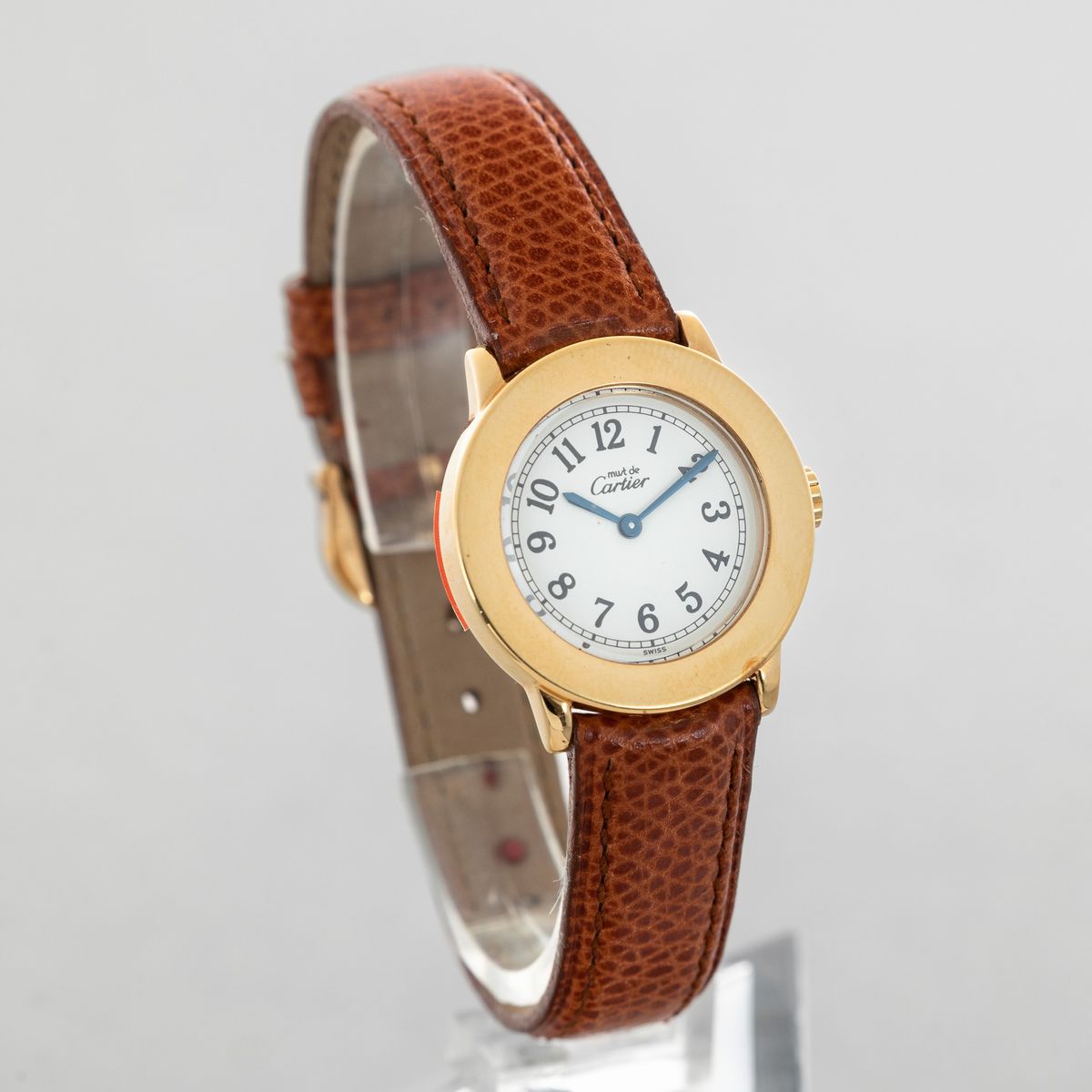 Cartier Must Ronde in argento 925 laminato in oro 18k, quadrante Argentè con numeri arabi, movimento al quarzo, cinturino in pelle con fibbia originale, come nuovo
