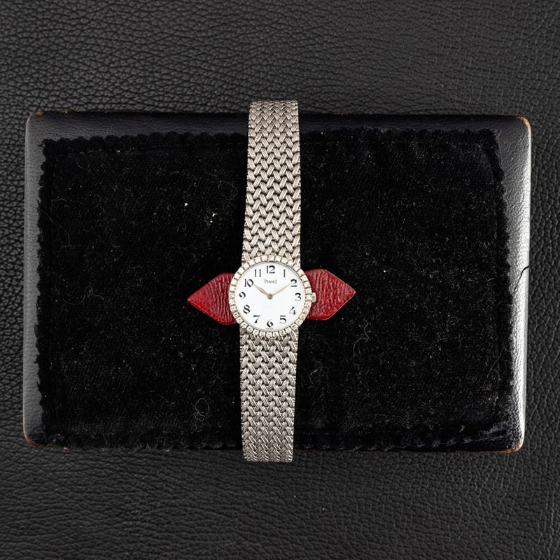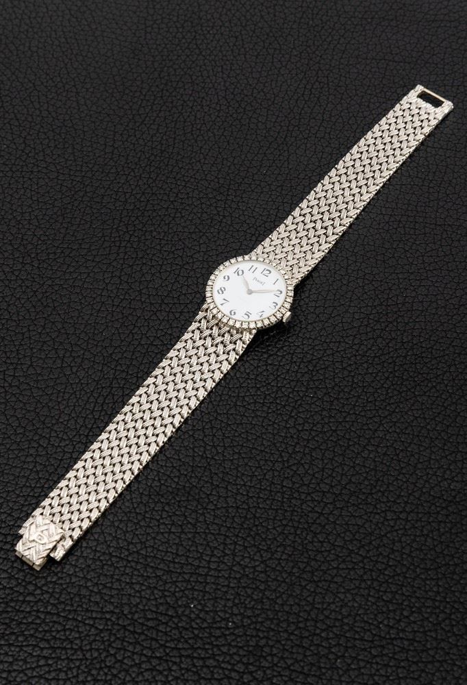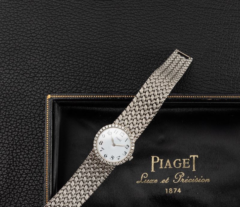 Raffinato orologio in oro bianco 18k con bracciale a maglia intrecciata integrato, ghiera in diamanti, quadrante bianco [..]