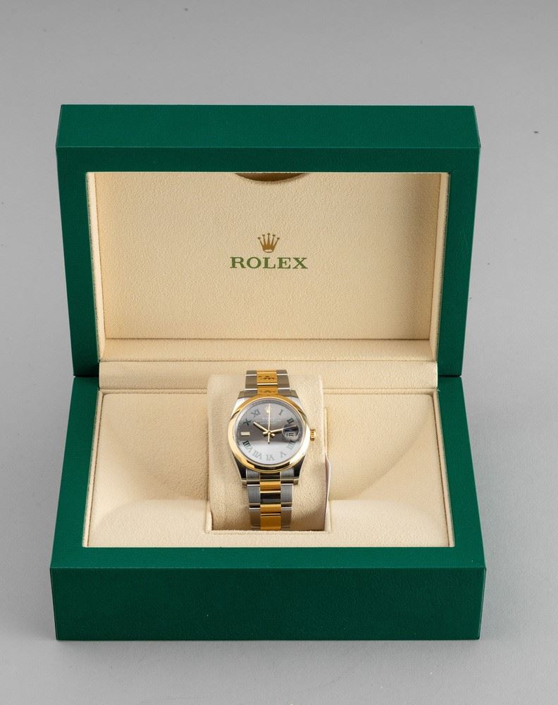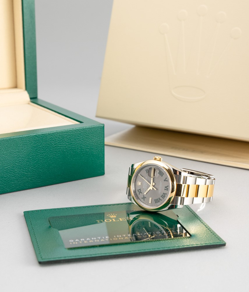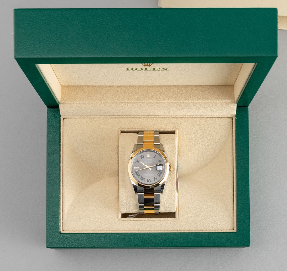 Datejust Wimbledon, ref 126203, in acciaio e oro giallo 18k con quadrante ardesia e numeri Romani verdi, bracciale Oyster [..]