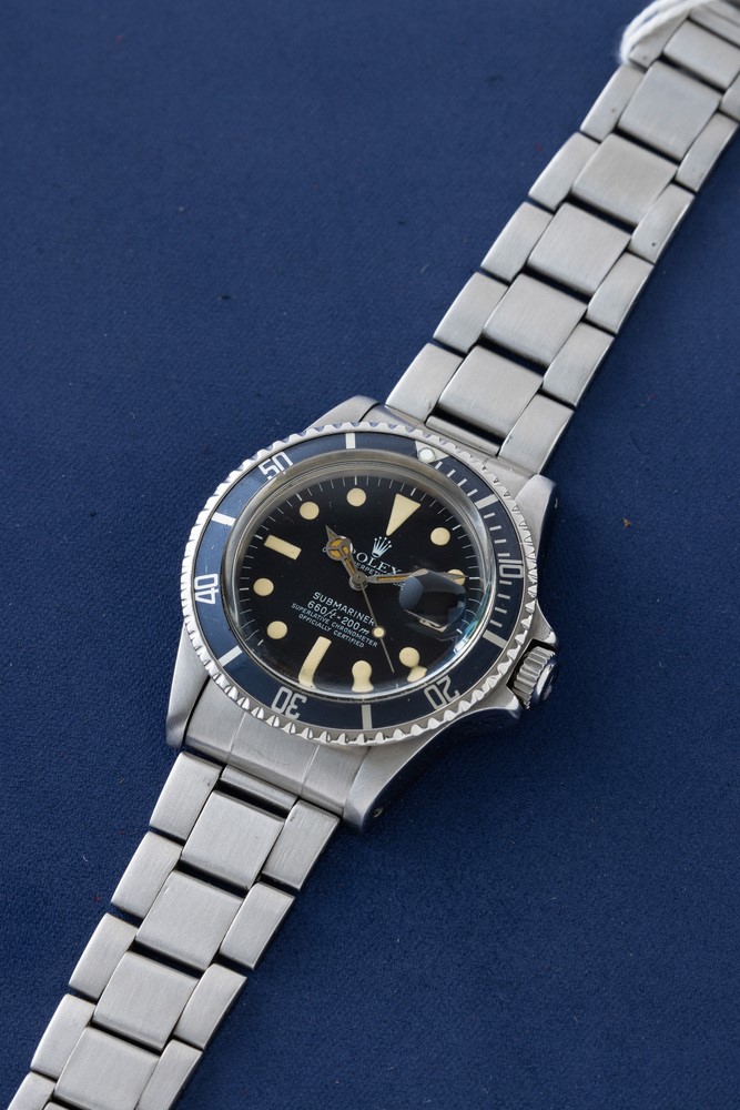 Sportivo Submariner ref 1680 in acciaio, quadrante nero opaco con pallettoni al trizio, ghiera girevole nera metallica lievemente sbiadita, movimento automatico con datario