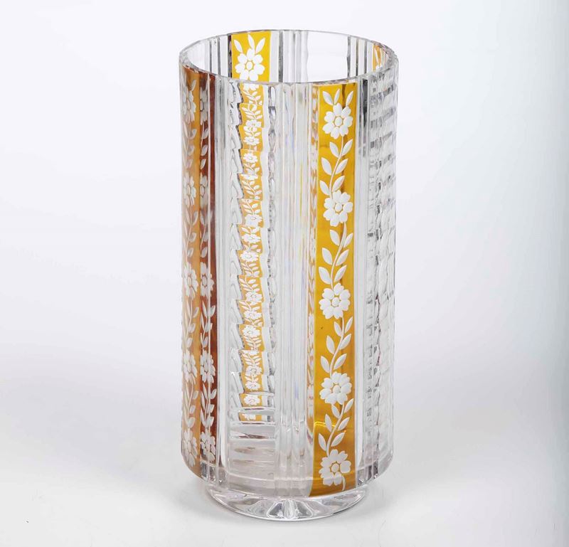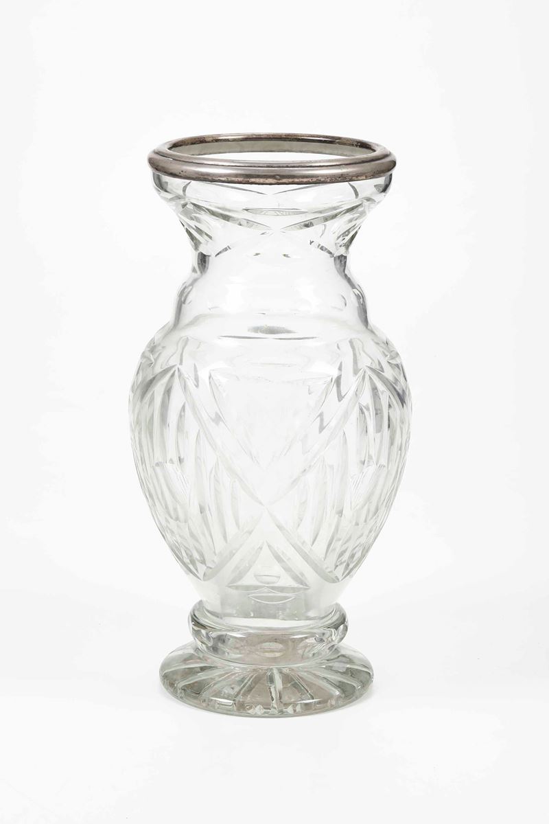 Lotto di due vasi in cristallo di cui uno con parti in argento