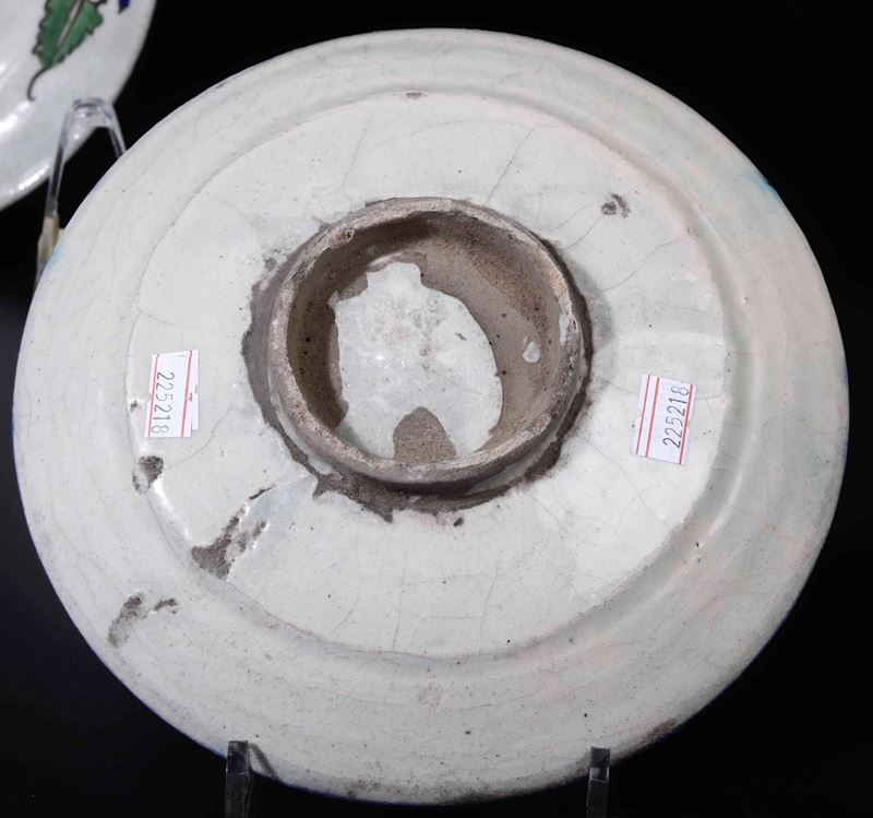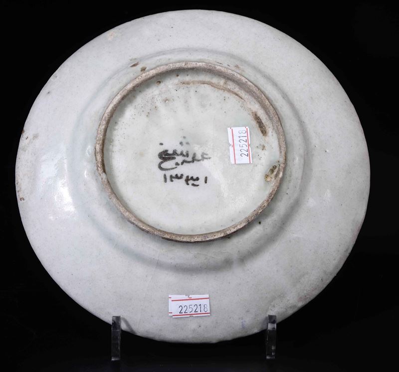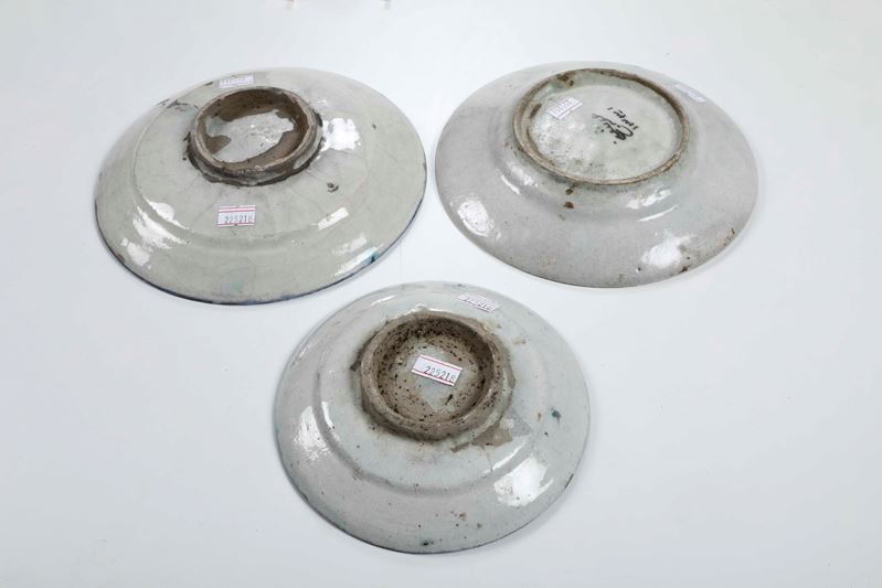 Tre piatti in porcellana, manifattura medio Orientale Turca o Iraniana