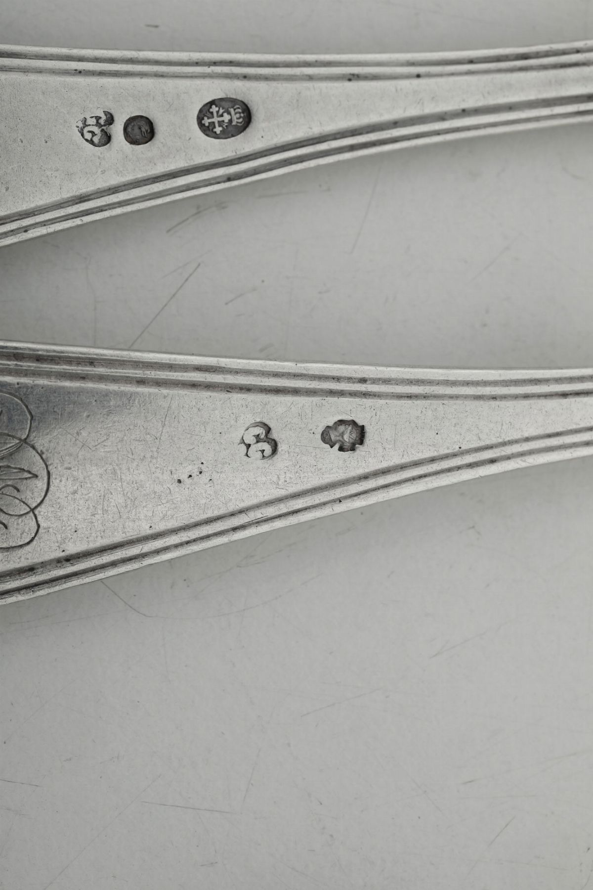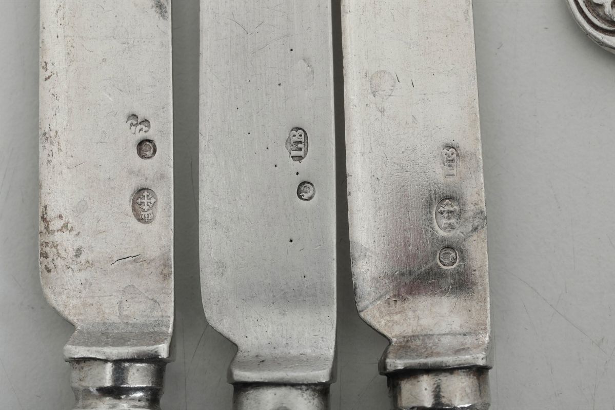 Antico servizio di posate, Genova, XIX secolo. Marchi differenti