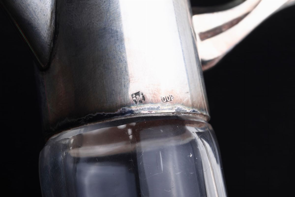 Caraffa con finimenti in argento. Argentiere Cesa, Alessandria. XX secolo